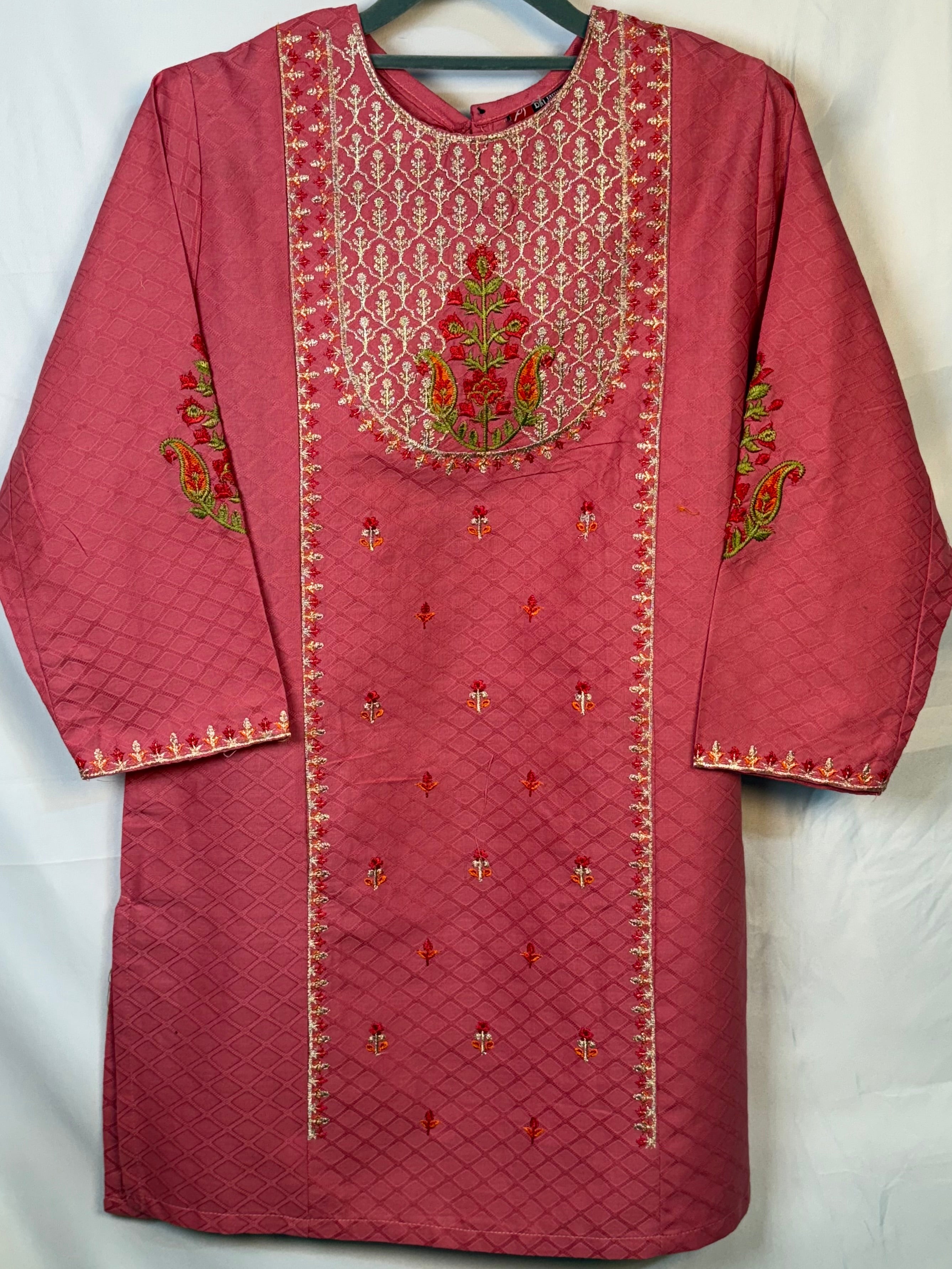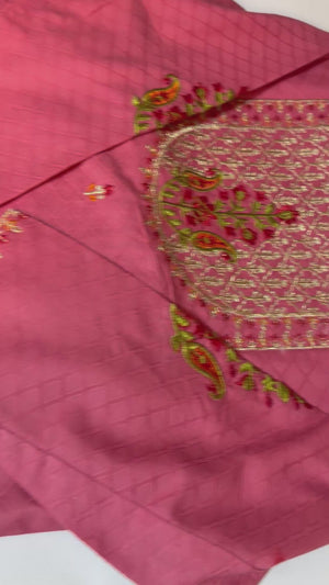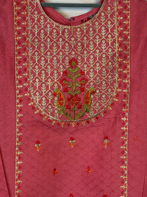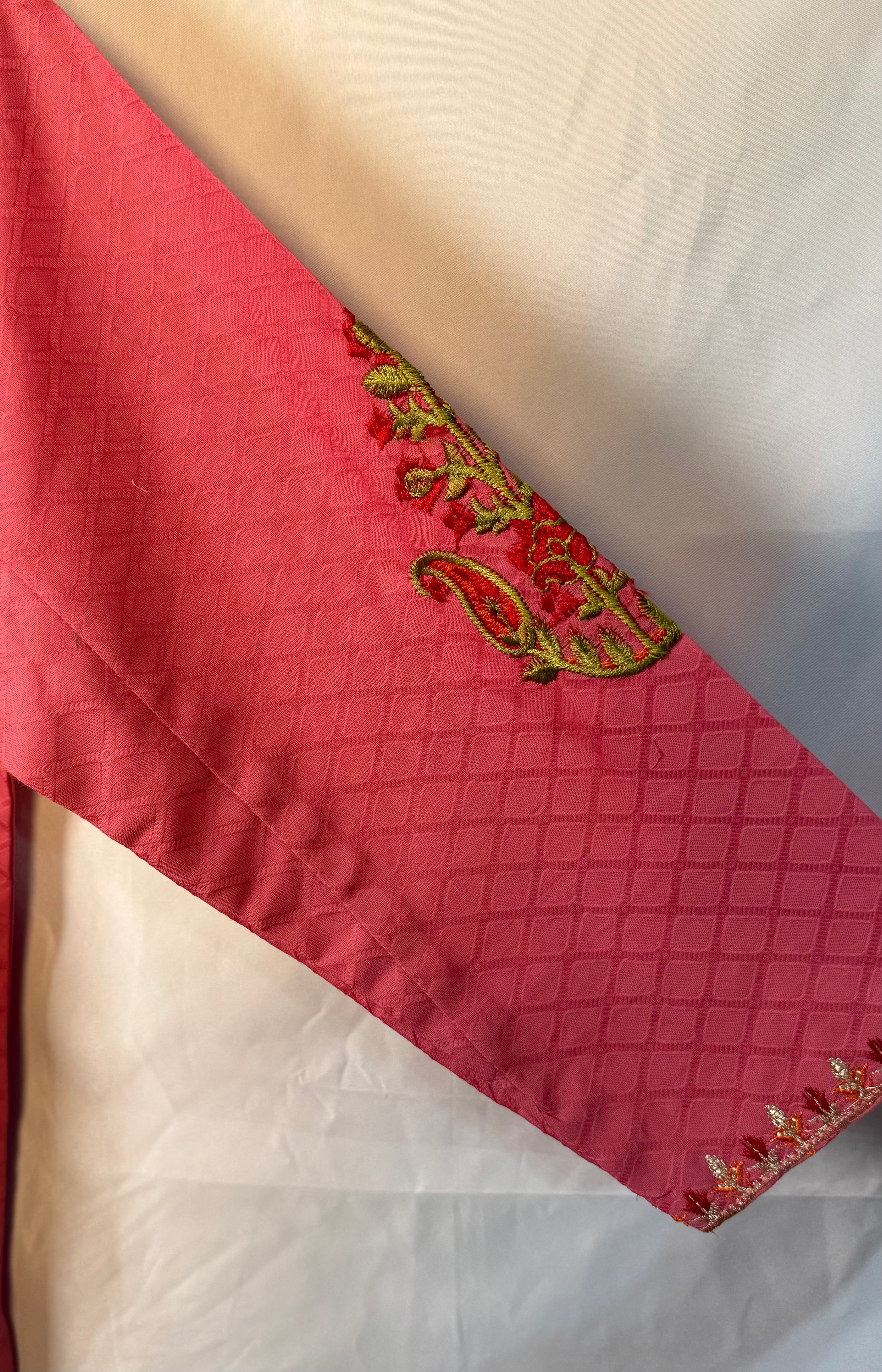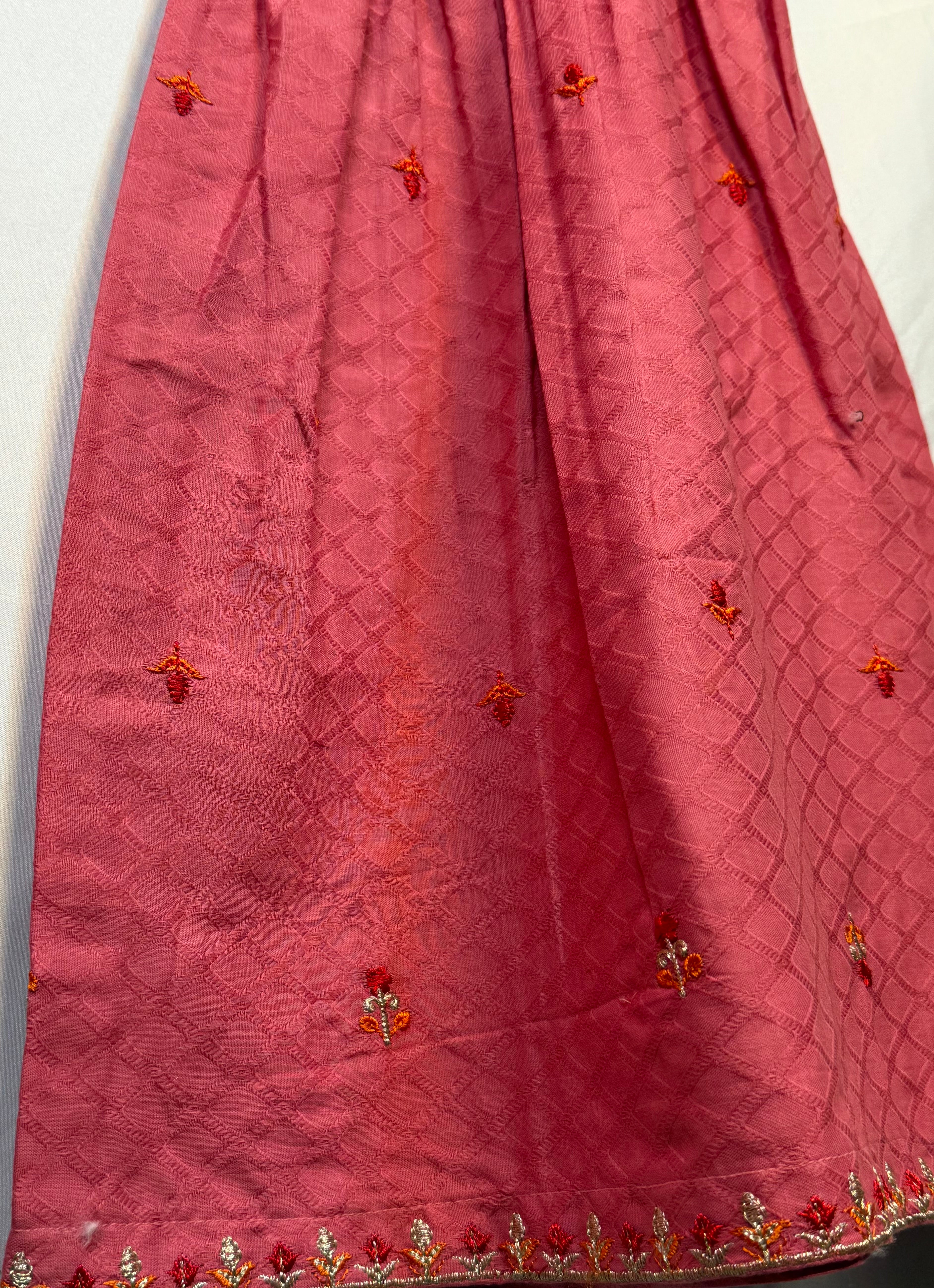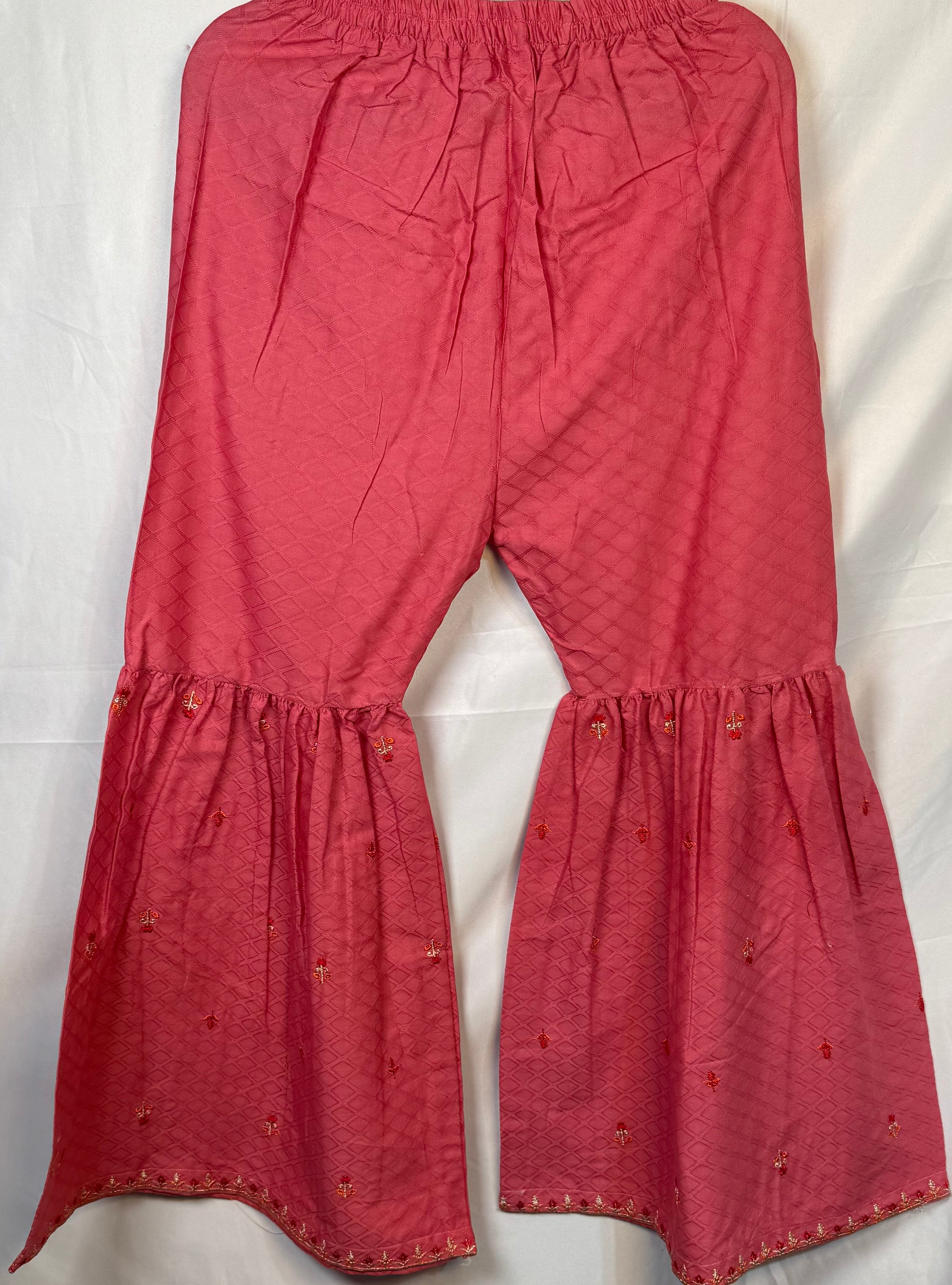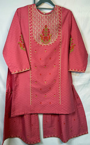 Girls Peach Self-Print Egyptian Cotton Garara Set With Thread Emobidary (2 Piece) Gcgs-1