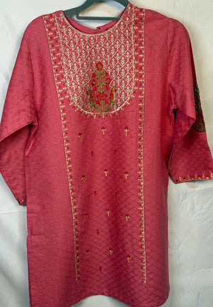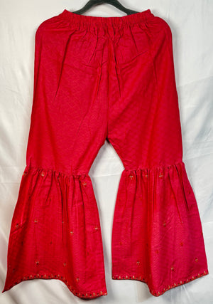 Adorn your little princess in this gorgeous Pakistani outfit. This set includes a beautifully embroidered shirt, and garara. The delicate Egyptian cotton material is perfect for your little one's sensitive skin. Plus, the intricate embroidery is sure to make your little girl stand out from the crowd. She is sure to make a fashion statement in this stylish outfit. Matching duppta is available at extra cost.