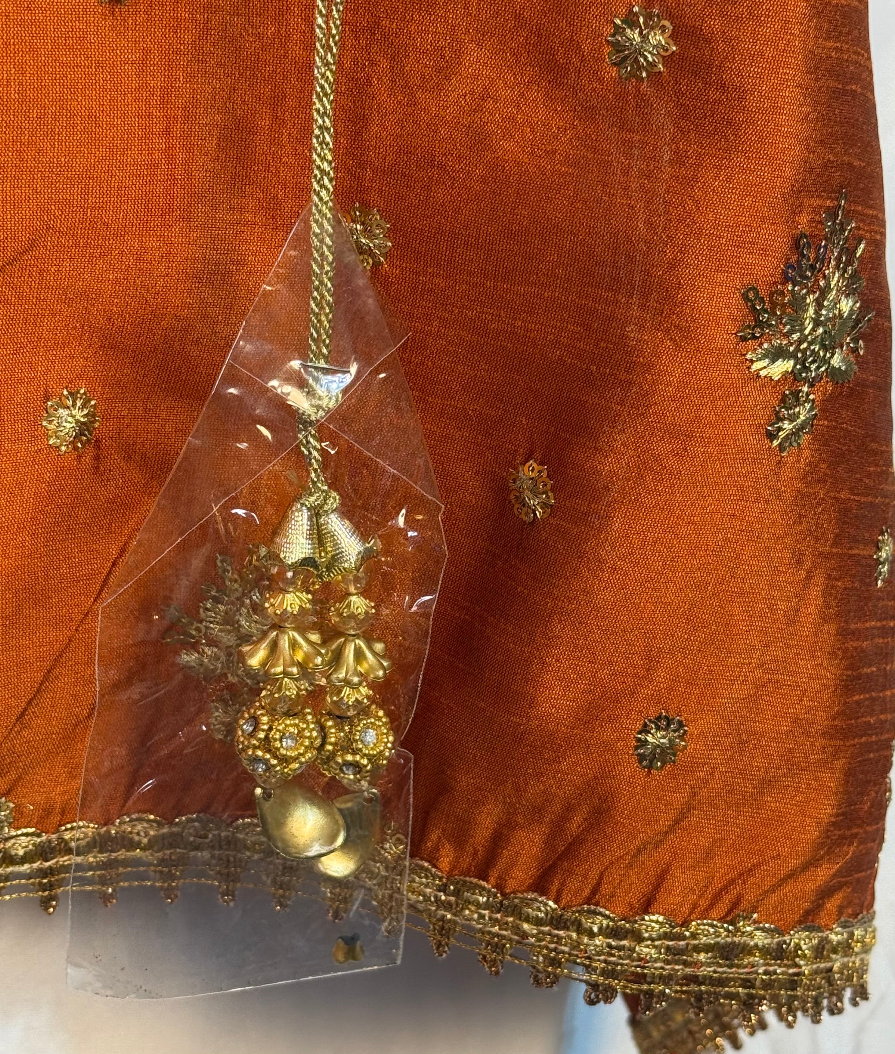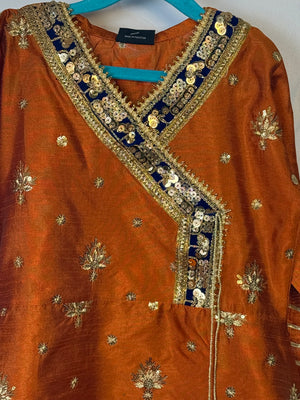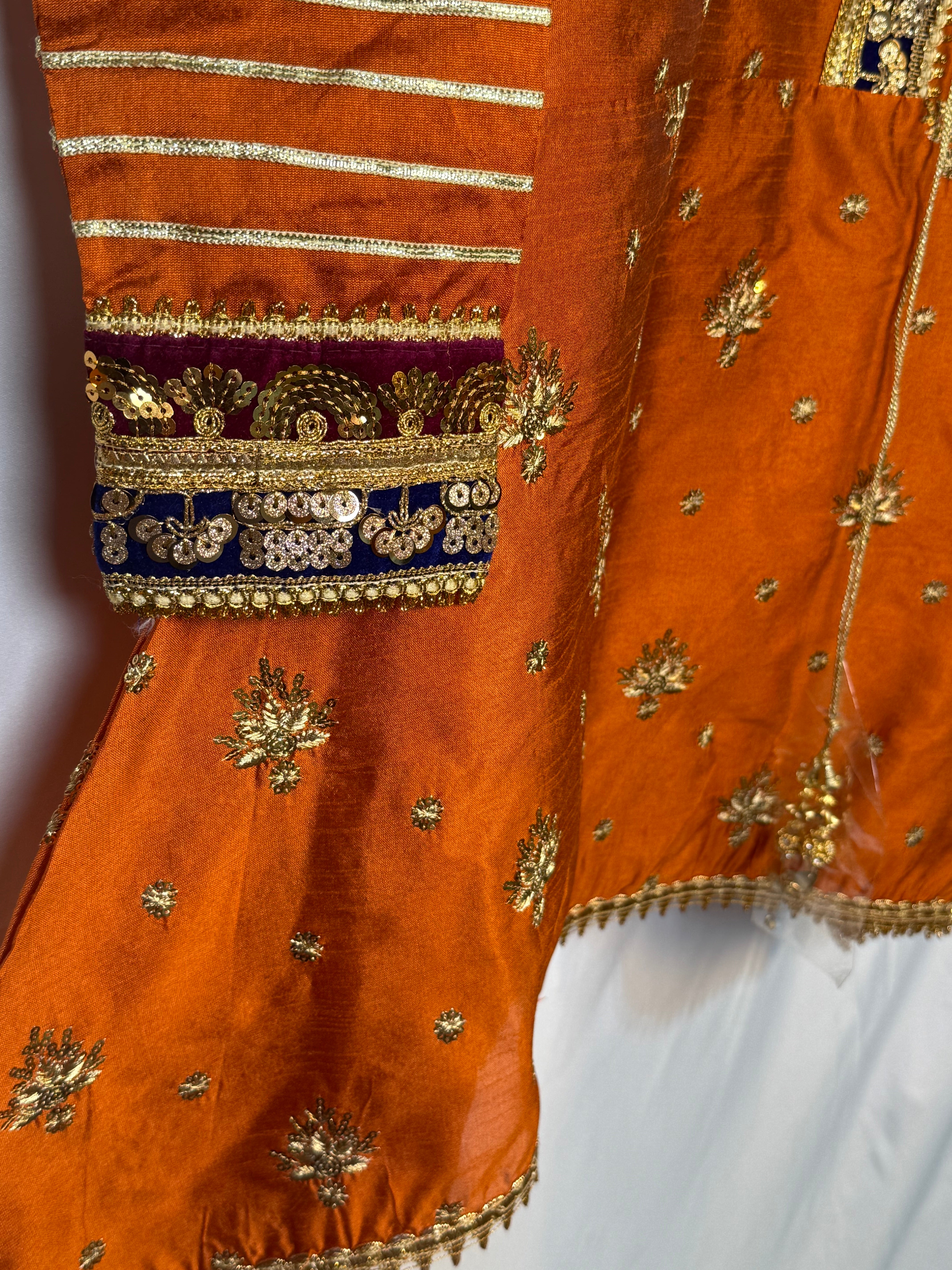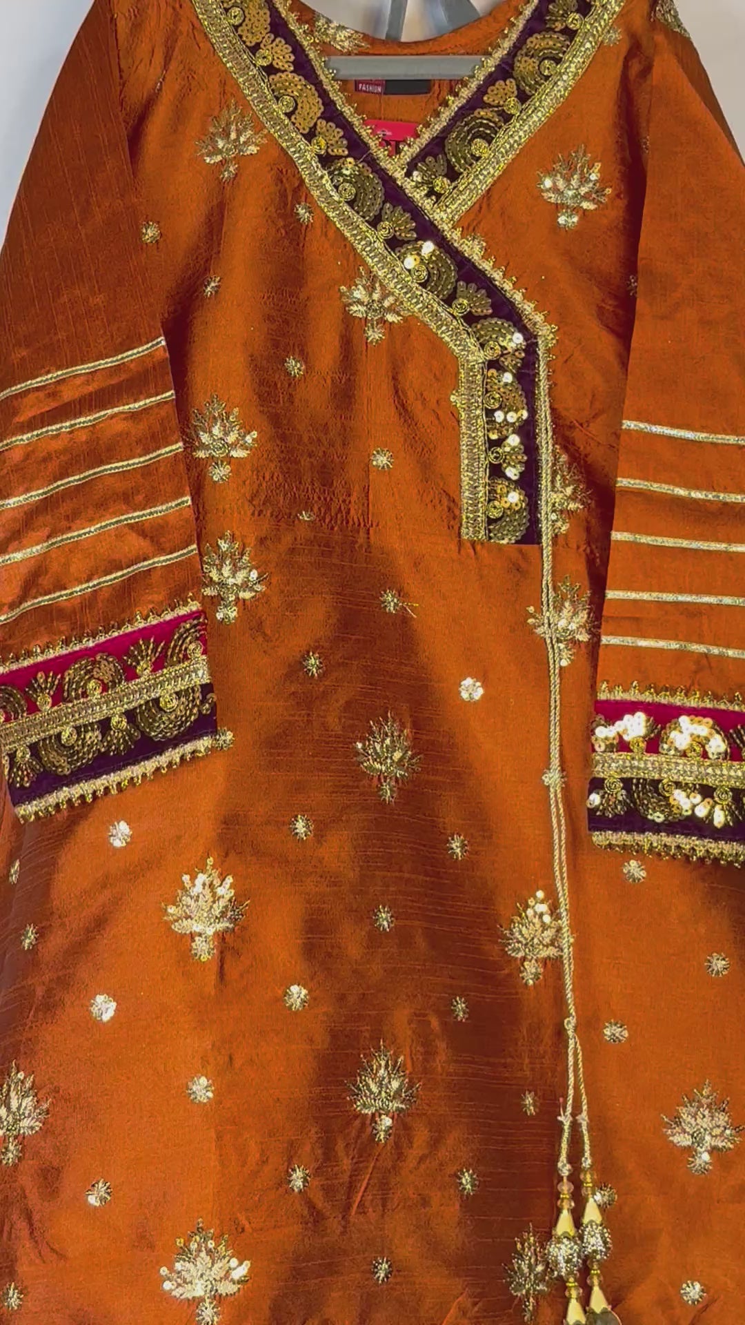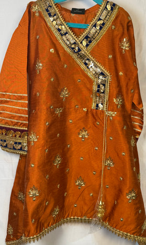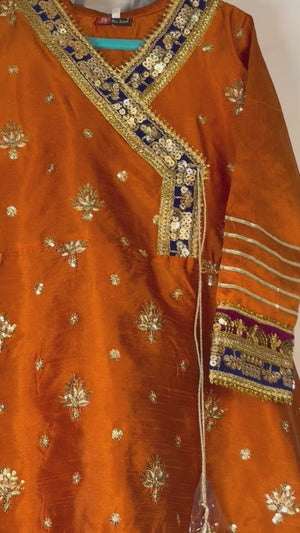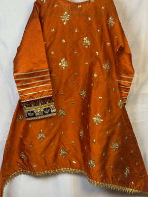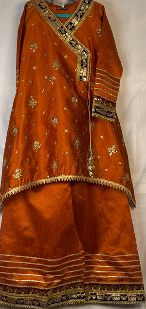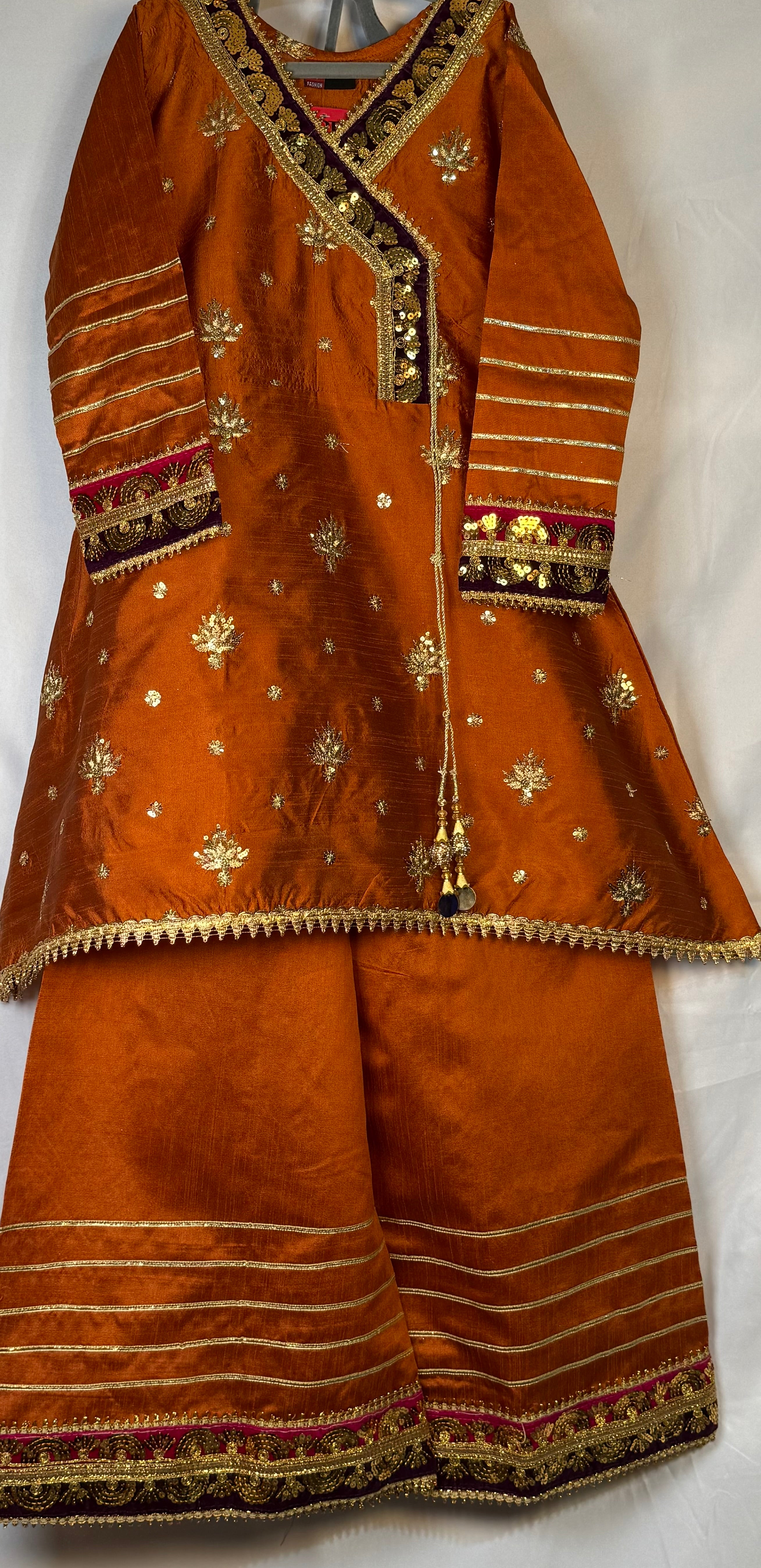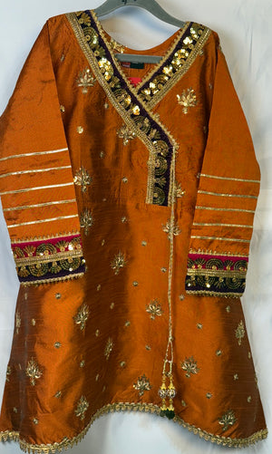Adorn your little princess in this gorgeous Pakistani outfit. This set includes a beautifully embroidered Airline frock, and a Plazo trouser. The delicate Kittan silk material is perfect for your little one's sensitive skin. Plus, the intricate embroidery is sure to make your little girl stand out from the crowd. She is sure to make a fashion statement in this stylish outfit. Buy Girls Airline frock and Plazo trouser Online at www.areebas.co.uk Follow us on https://www.instagram.com/areebas_couture/.