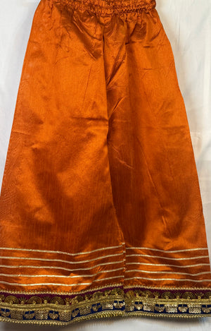 Girls Mustard Colour On Kittan Silk Fabric Airline Frock & Plazo Set With Emobidary On Shirt And Design On Plazo (2 Piece) Gcgs-15