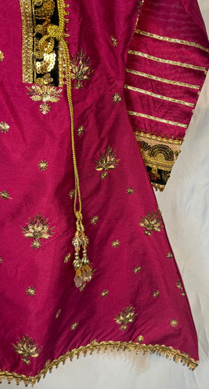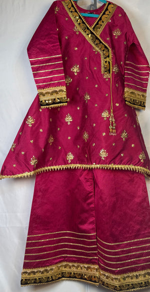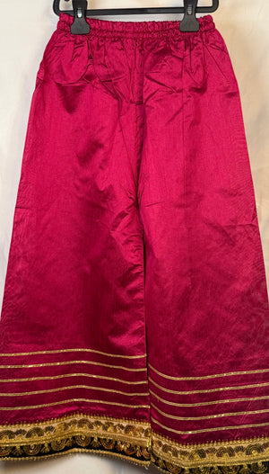 Girls Shocking Pink Airline Frock & Plazo Set On Kittan Silk With Emobidary On Shirt And Design On Plazo (2 Piece) Gcgs-16