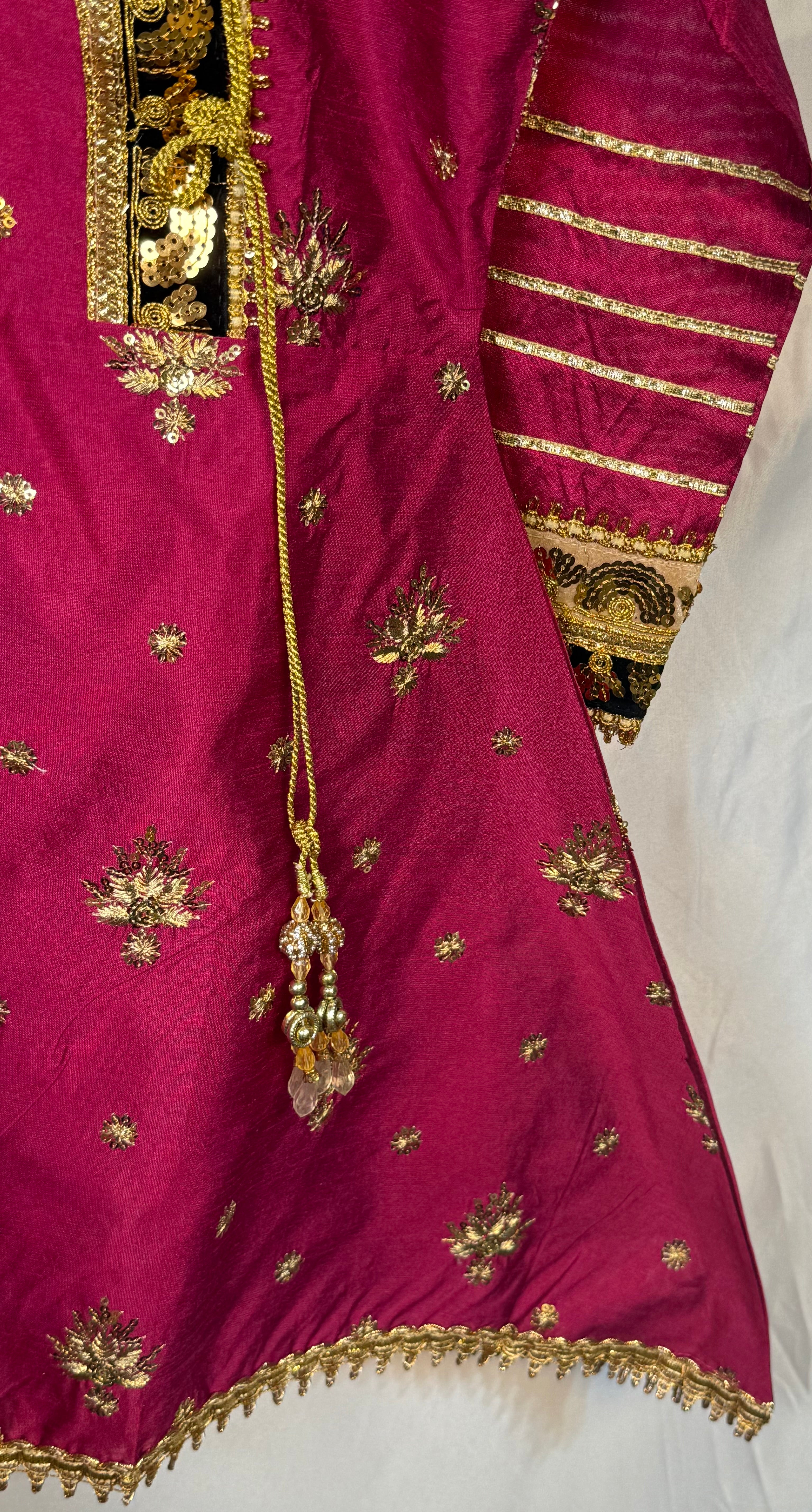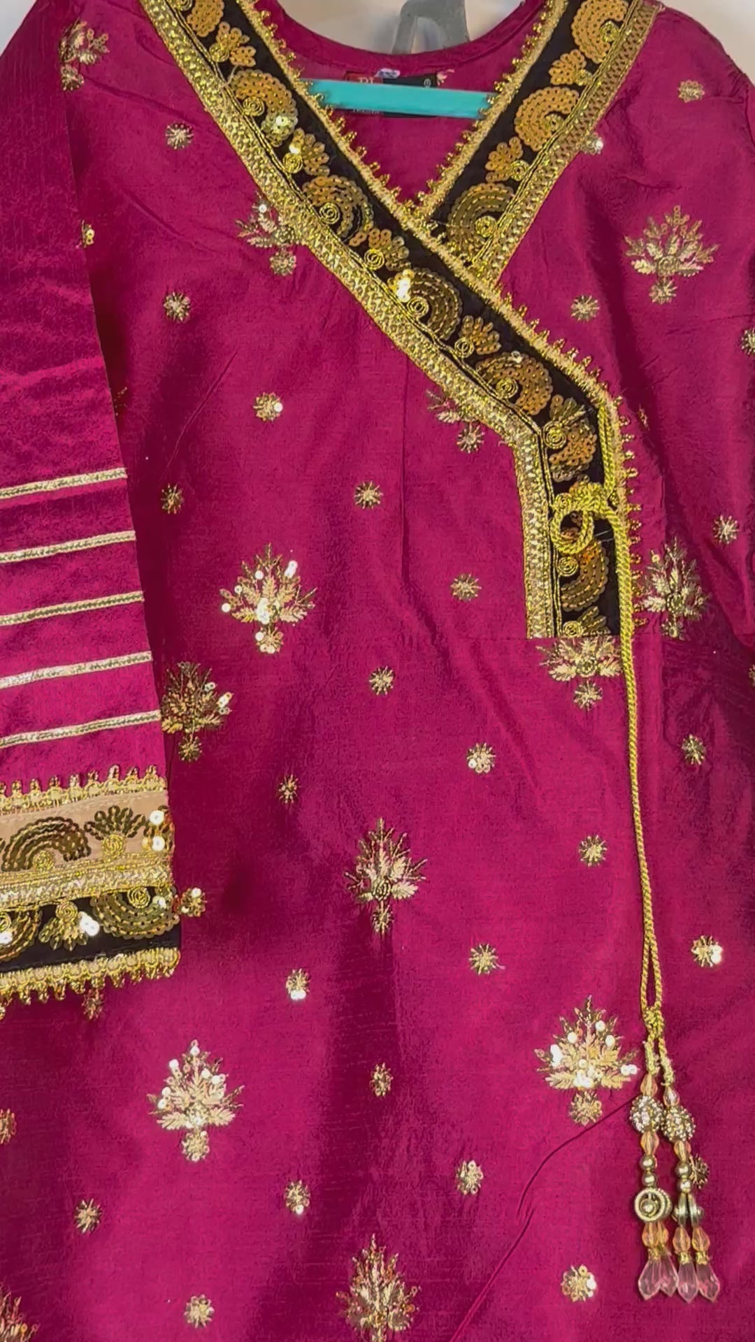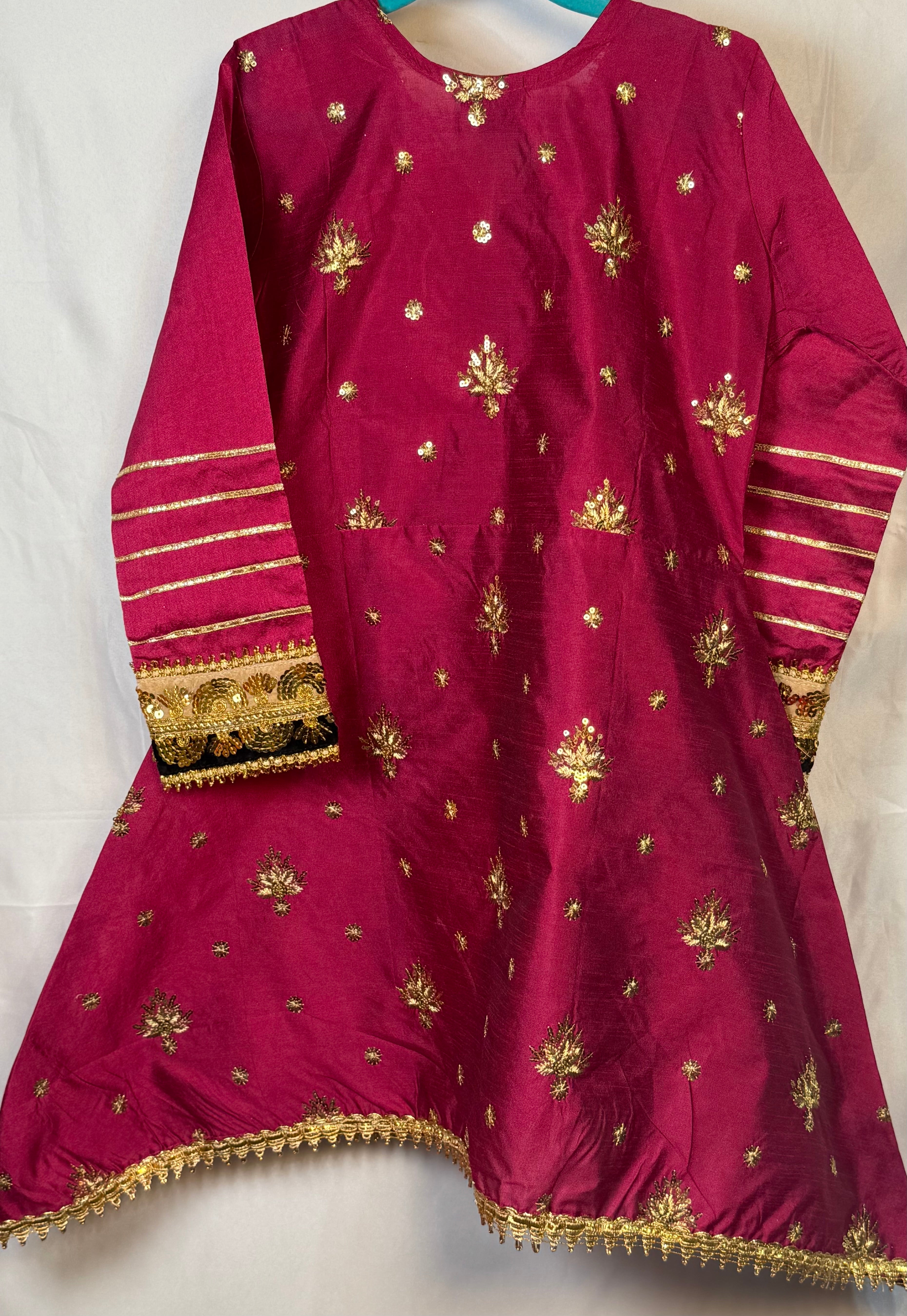 Adorn your little princess in this gorgeous Pakistani outfit. This set includes a beautifully embroidered Airline frock, and a Plazo trouser. The delicate Kittan silk material is perfect for your little one's sensitive skin. Plus, the intricate embroidery is sure to make your little girl stand out from the crowd. She is sure to make a fashion statement in this stylish outfit. Buy Girls Airline frock and Plazo trouser Online at www.areebas.co.uk Follow us on https://www.instagram.com/areebas_couture/.