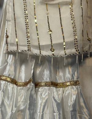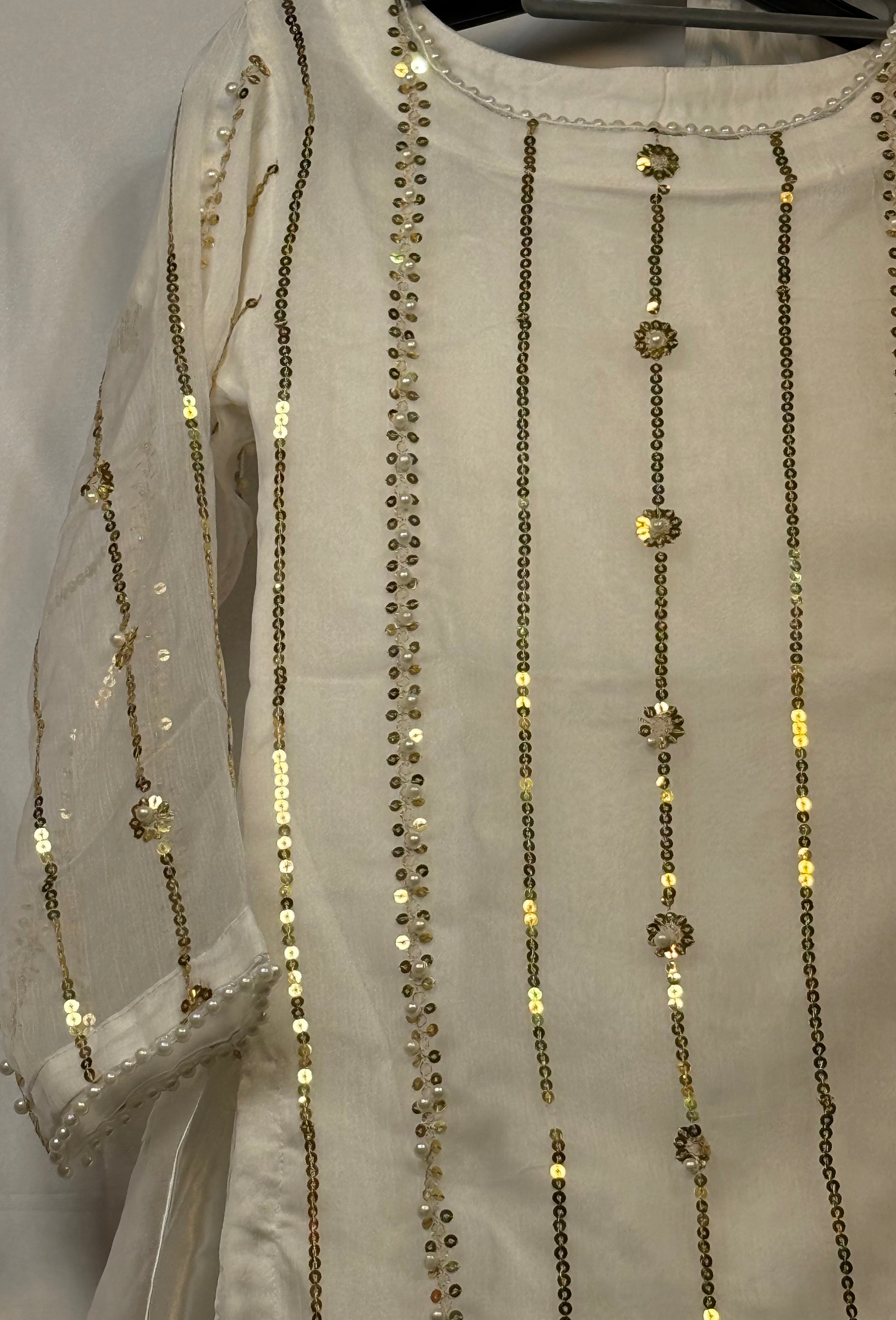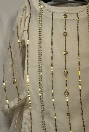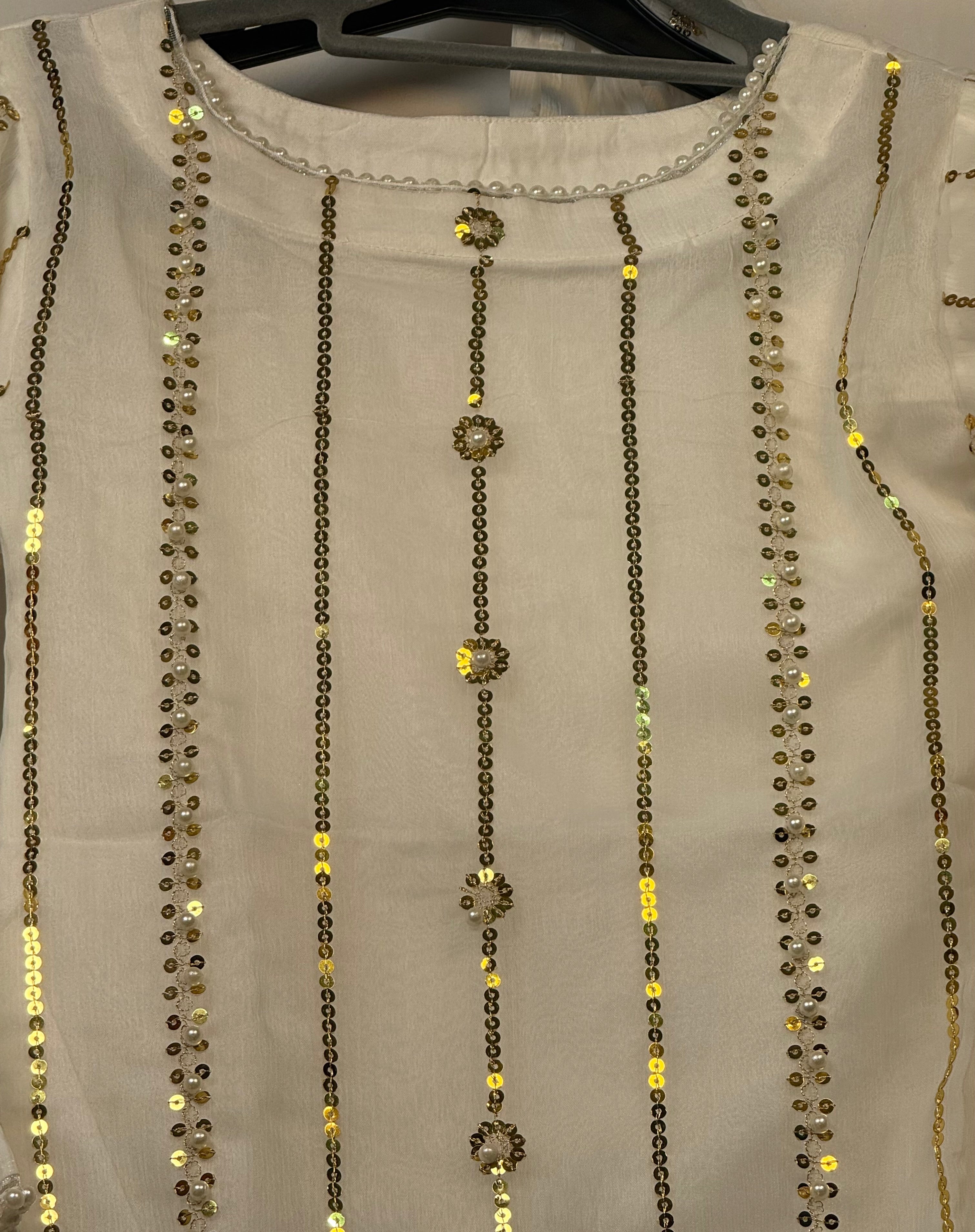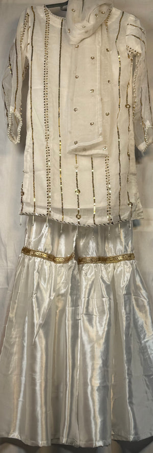 Girls White Chiffon Shirt & Garara Set With Sequence Emobidary On Shirt (3 Piece) Gcgs-21