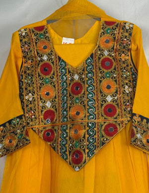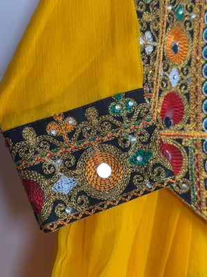 We are presenting Chiffon fabric with matching trouser suit 3 Pcs. Experience the traditional Afghan style with our Afghan Dress for Women. This beautiful Chiffon frock and matching trouser is a perfect representation of the rich culture and heritage of KPK (Pakistan) and Afghanistan. Crafted with high quality material, this dress guarantees both comfort and style. It features a loose fitting design that allows for ease of movement, making ideal for all occasions.