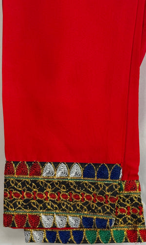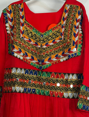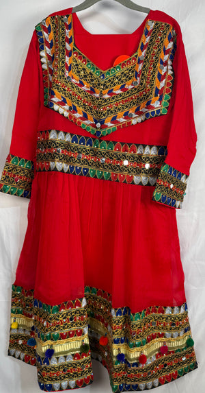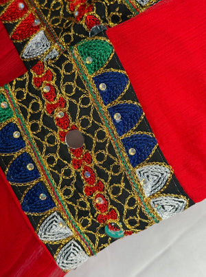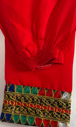 We are presenting Chiffon fabric with matching trouser suit 3 Pcs. Experience the traditional Afghan style with our Afghan Dress for Women. This beautiful Chiffon frock and matching trouser is a perfect representation of the rich culture and heritage of KPK (Pakistan) and Afghanistan. Crafted with high quality material, this dress guarantees both comfort and style. It features a loose fitting design that allows for ease of movement, making ideal for all occasions.