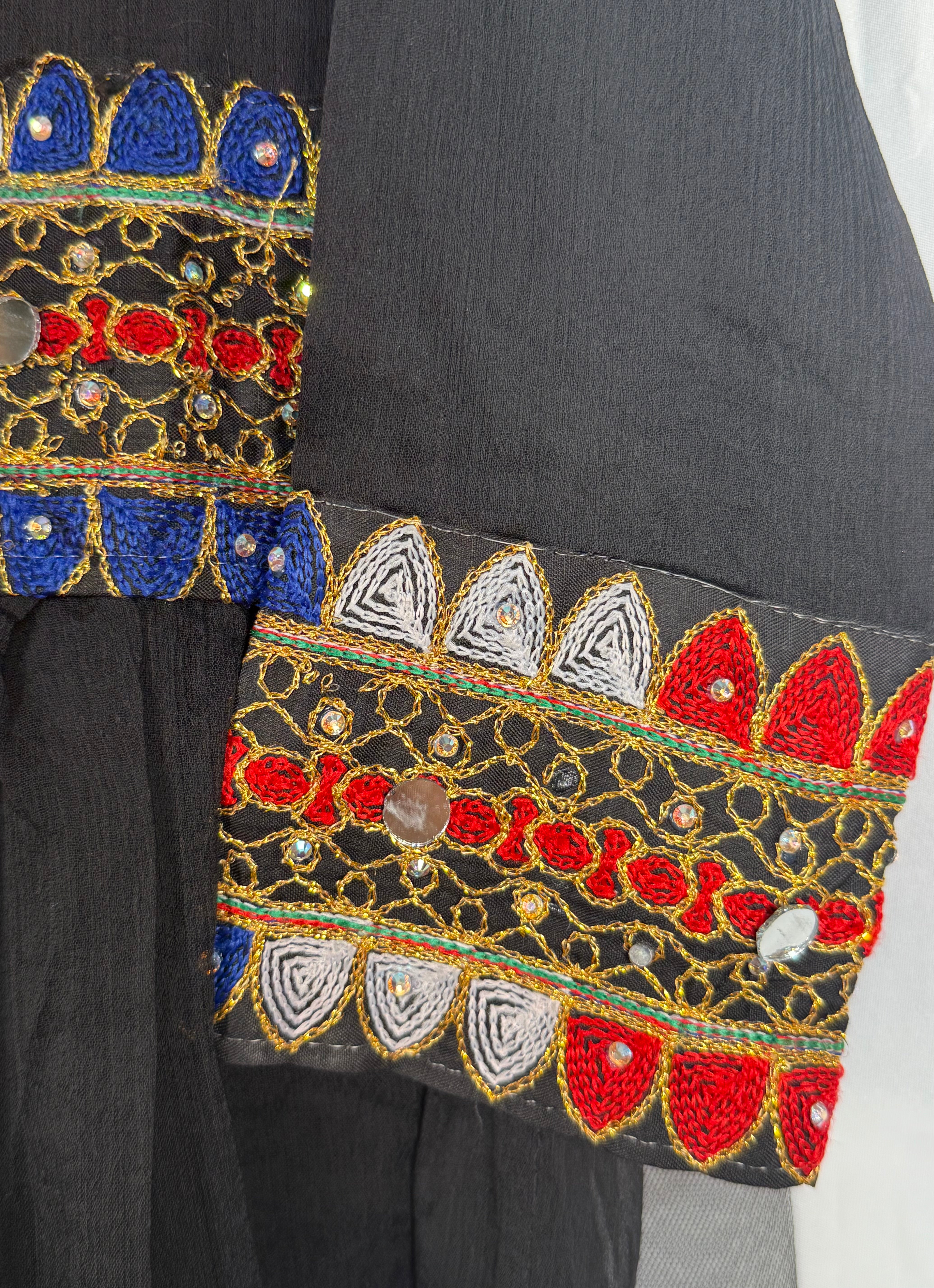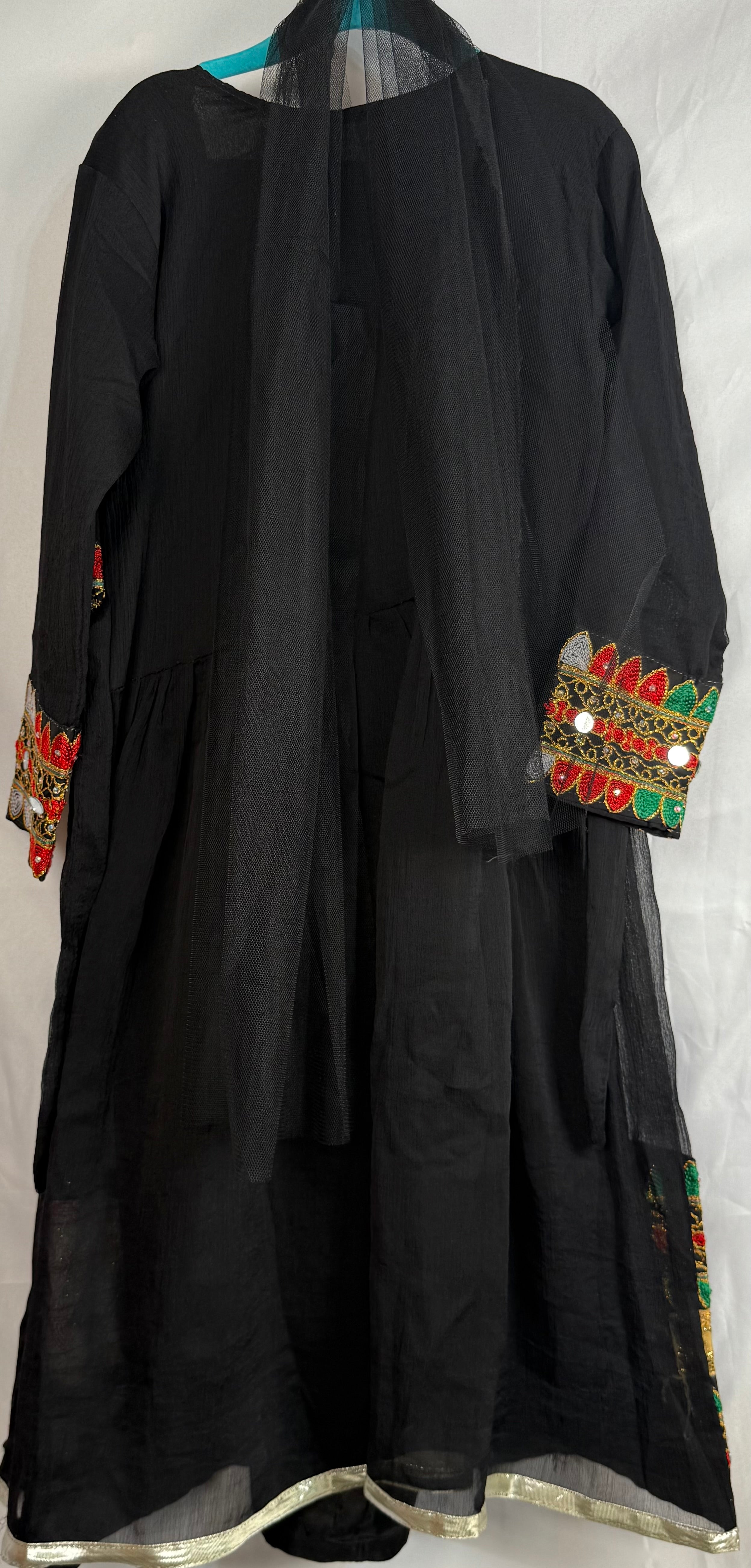 We are presenting Chiffon fabric with matching trouser suit 3 Pcs. Experience the traditional Afghan style with our Afghan Dress for Women. This beautiful Chiffon frock and matching trouser is a perfect representation of the rich culture and heritage of KPK (Pakistan) and Afghanistan. Crafted with high quality material, this dress guarantees both comfort and style. It features a loose fitting design that allows for ease of movement, making ideal for all occasions.