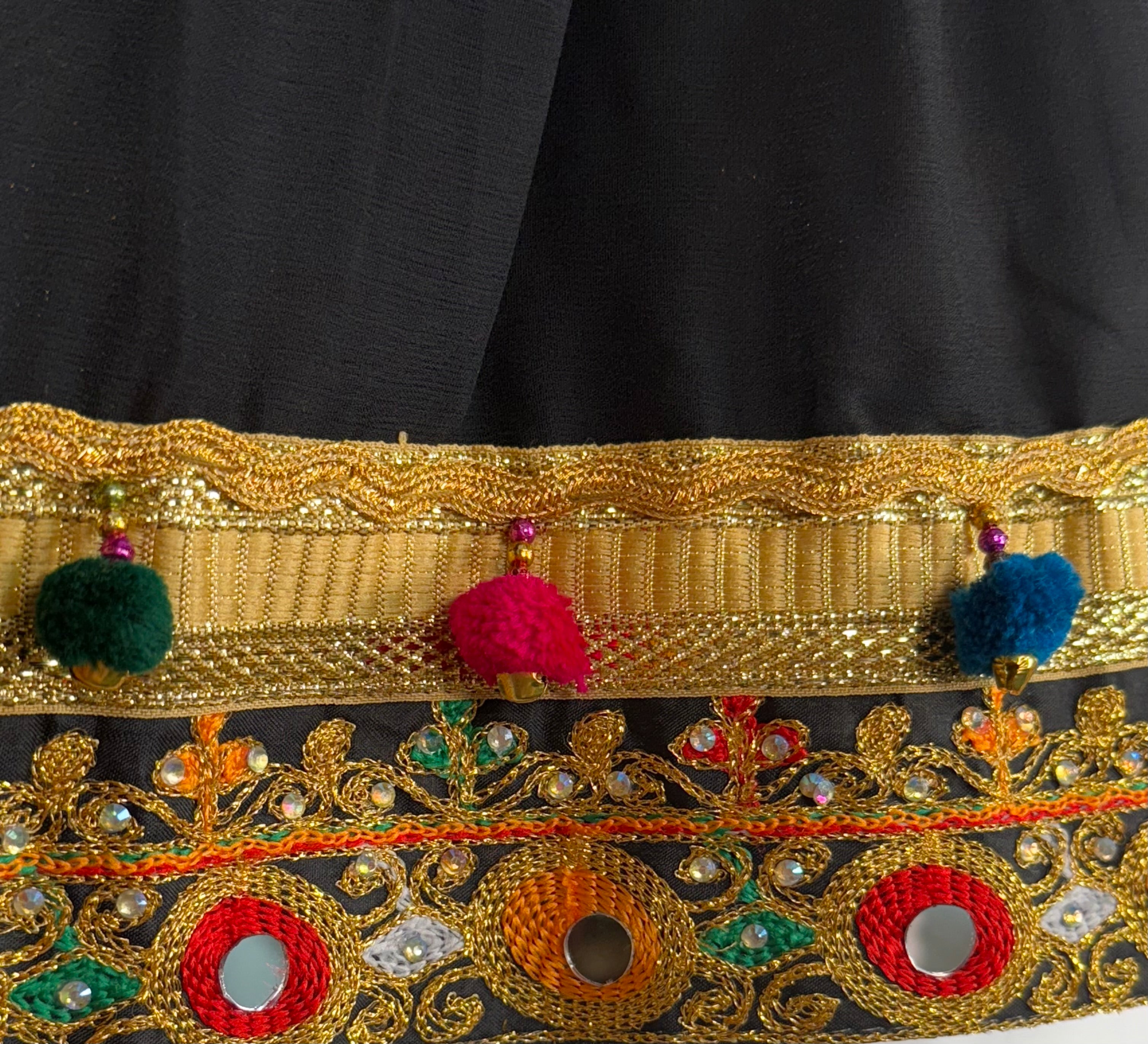 We are presenting Chiffon fabric with matching trouser suit 3 Pcs. Experience the traditional Afghan style with our Afghan Dress for Women. This beautiful Chiffon frock and matching trouser is a perfect representation of the rich culture and heritage of KPK (Pakistan) and Afghanistan. Crafted with high quality material, this dress guarantees both comfort and style. It features a loose fitting design that allows for ease of movement, making ideal for all occasions.