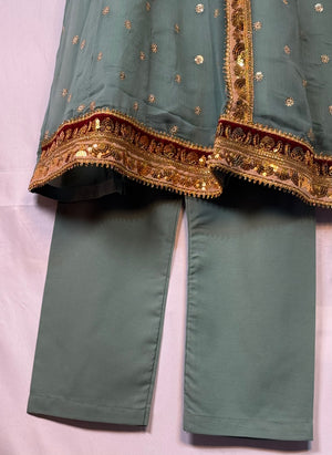 Girls Chiffon Angrakah Style Shirt & Trouser Set With Emobidary On Shirt (2 Piece) Gcgs-18
