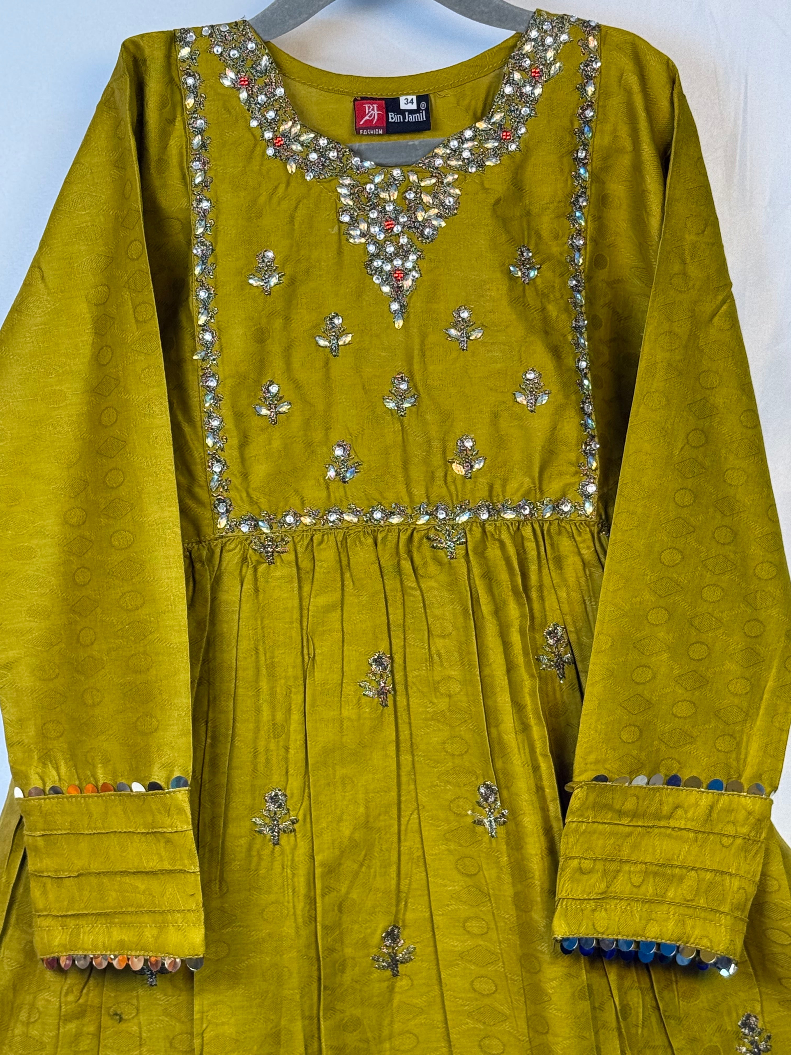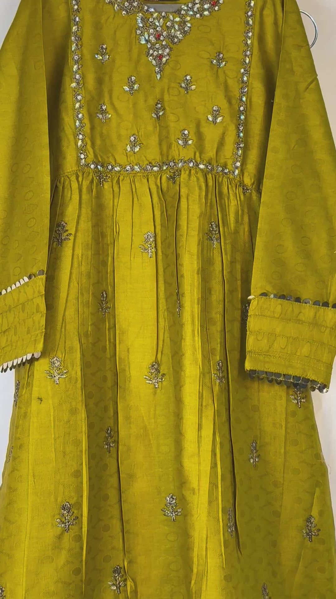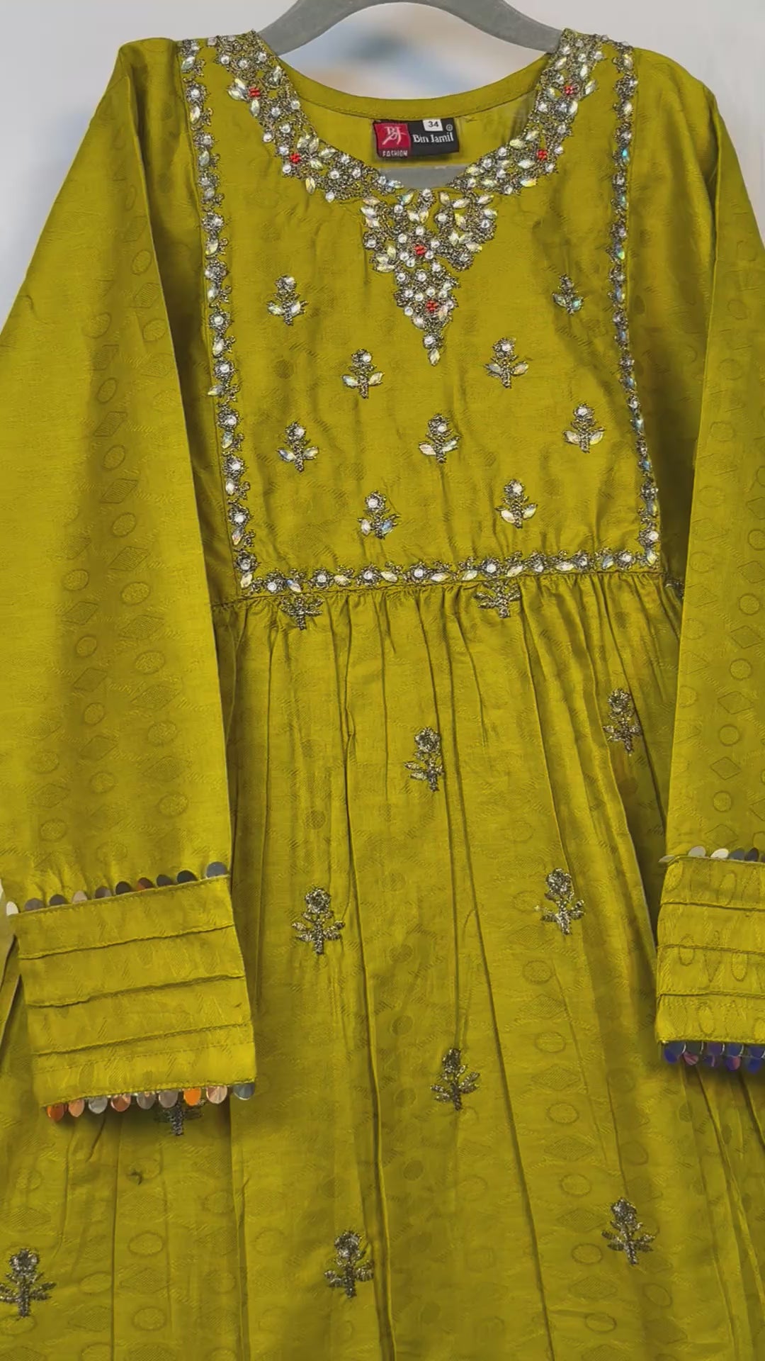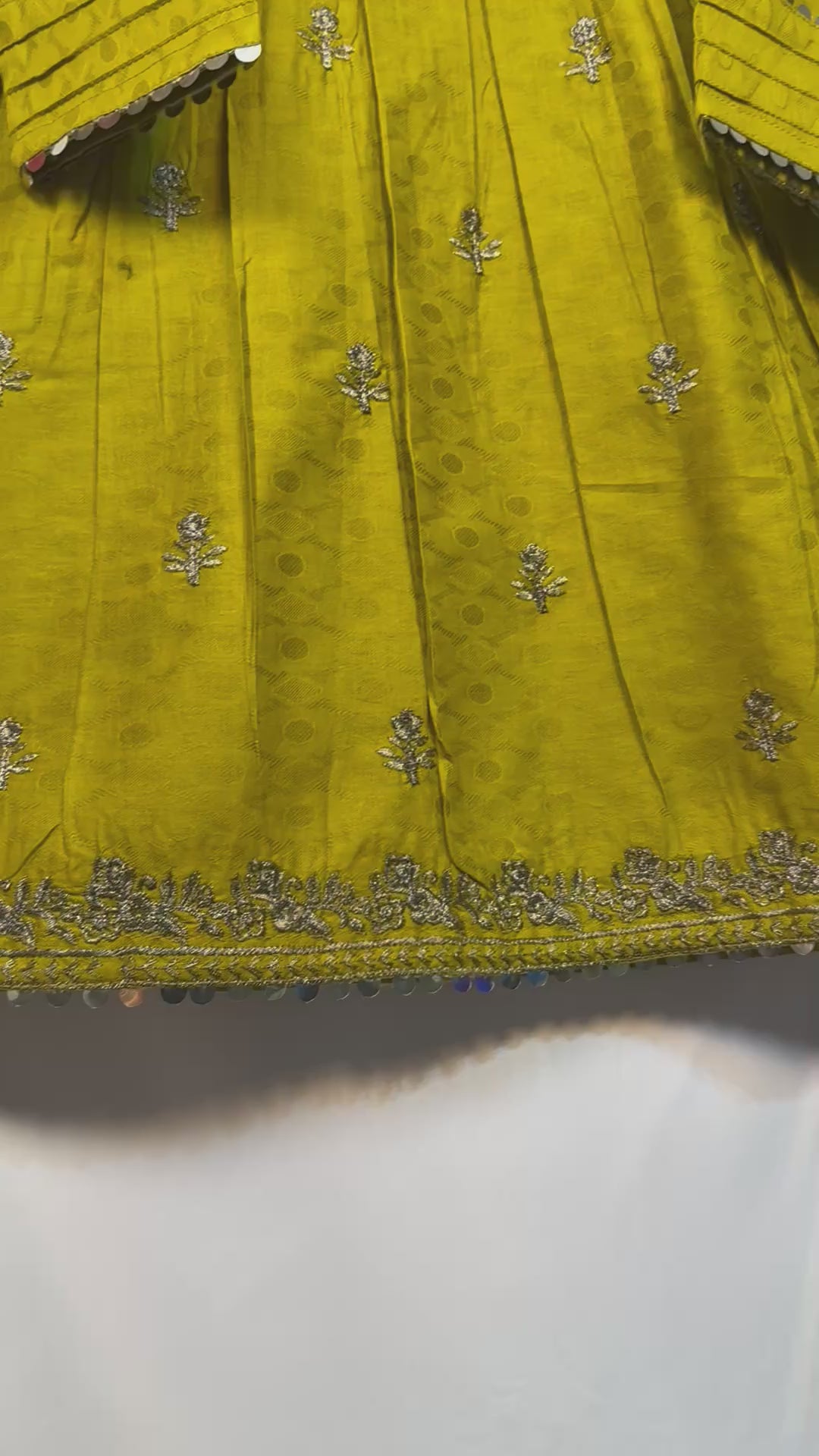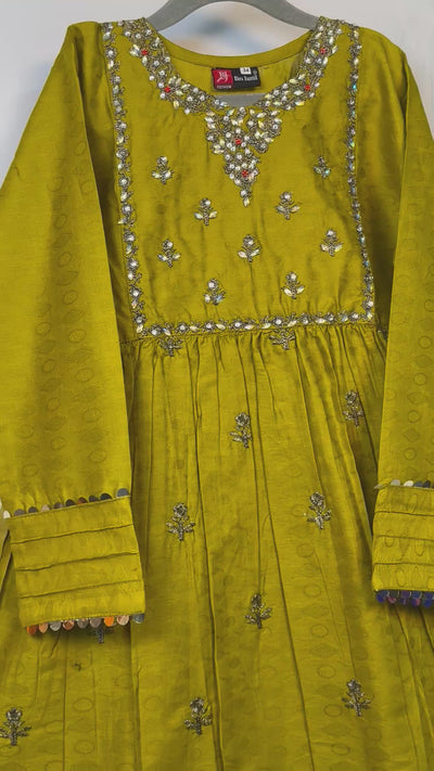 Girls Mehndi Self-Print Egyptian Cotton Shirt & Trouser Set With Diamantaire And Sequence Emobidary (2 Piece) Gcgs-7