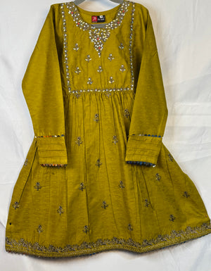 Adorn your little princess in this gorgeous Pakistani outfit. This set includes a beautifully embroidered shirt, and trouser. The delicate Egyptian cotton material is perfect for your little one's sensitive skin. Plus, the intricate embroidery is sure to make your little girl stand out from the crowd. She is sure to make a fashion statement in this stylish outfit. Matching duppta is available at extra cost.