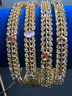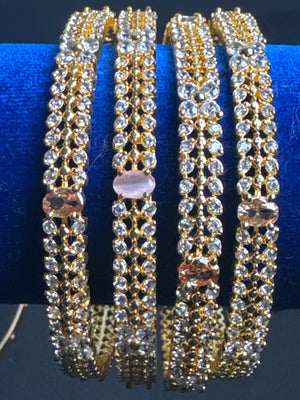 Step out in exquisite style and adorn your wrist with our beautiful Kara golden and rose gold ruby squares. Each bangle features a combination of gold and rose gold, with square shaped faux diamond inserts for a timeless, elegant look. Put your best foot forward in these stunning and glamorous bangles. Ready to be admired?