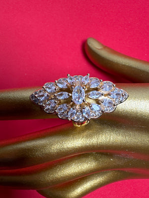 Do you love to dazzle in artificial jewellery? Show off your statement style with this faux-gemstone-on-golden-ring set. You'll have the perfect accessory for any occasion, and you won't have to break the bank. Plus, it comes with a dazzling bonus: you don't have to worry about it ever going out of style! Shine bright like the star you are!