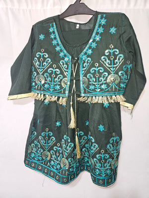 This green cotton frock is made from high-quality cotton fabric that is both comfortable and durable. The beautiful green colour is achieved through a natural dyeing process. The frock is perfect for any occasion and is sure to make you stand out in style while also being kind to the environment.