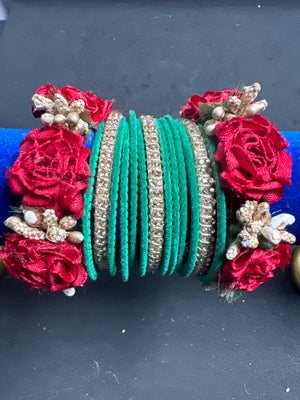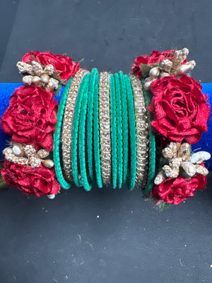 Choori and flower bangles mixed to create wonderful set to compliment your dress for any function.