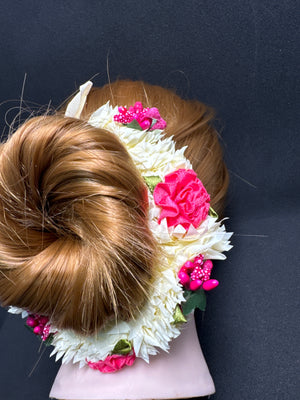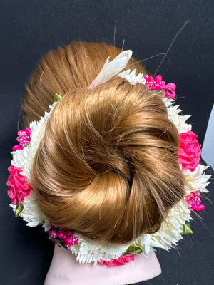 Hair Bun Flower Jewellery in Pink and White Colour Elegant Hair Accessory for Special Occasions