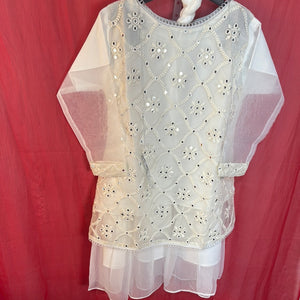 Girls Panni Work White Garara Set in Chiffon Fabric with Embroidered Design & Matching Dupatta for Special Days