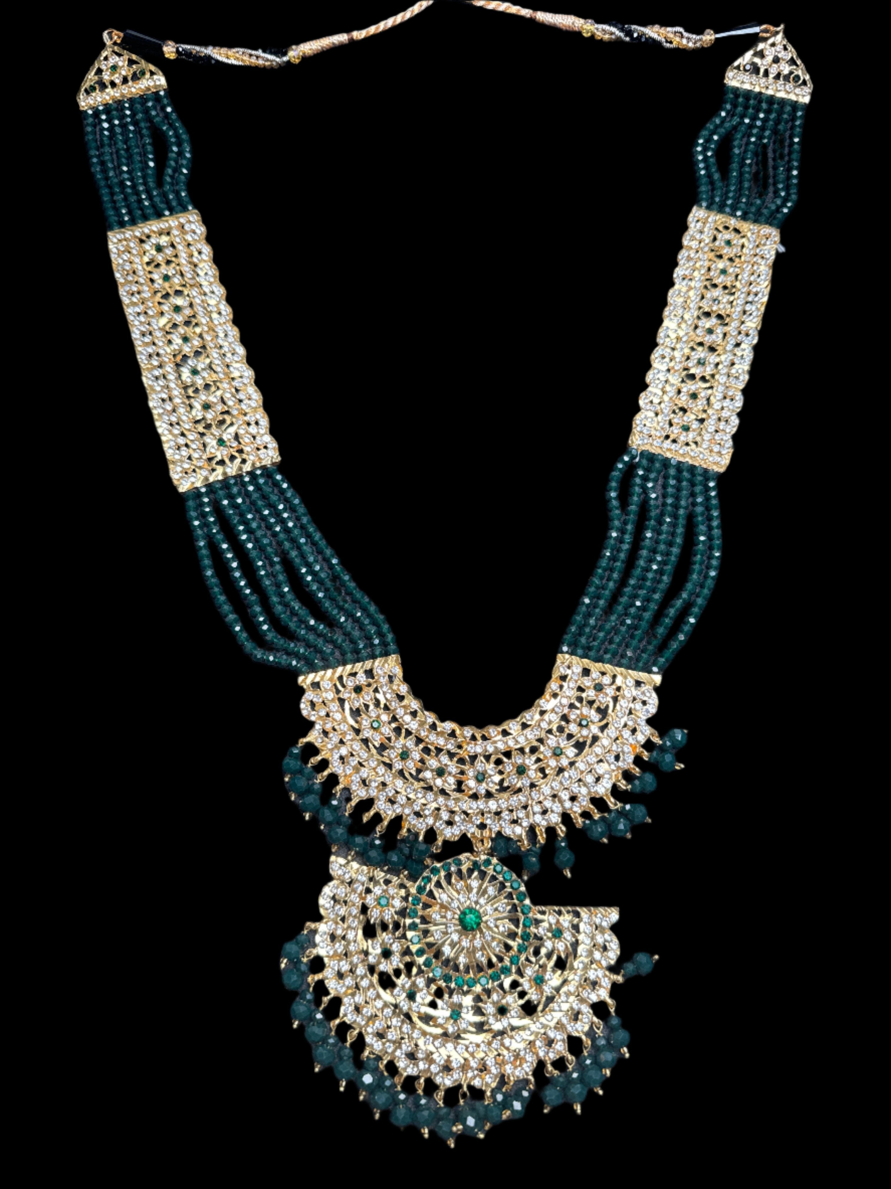 This Mala set consists of a long mala, a choker, earrings, a Bindi, and a Jomer. With its carefully selected combination of traditional jewellery, it creates a unique and beautiful look that's ideal for any traditional occasion. Crafted from premium materials, its pieces are sturdy and durable, ensuring an impeccable look for years to come.