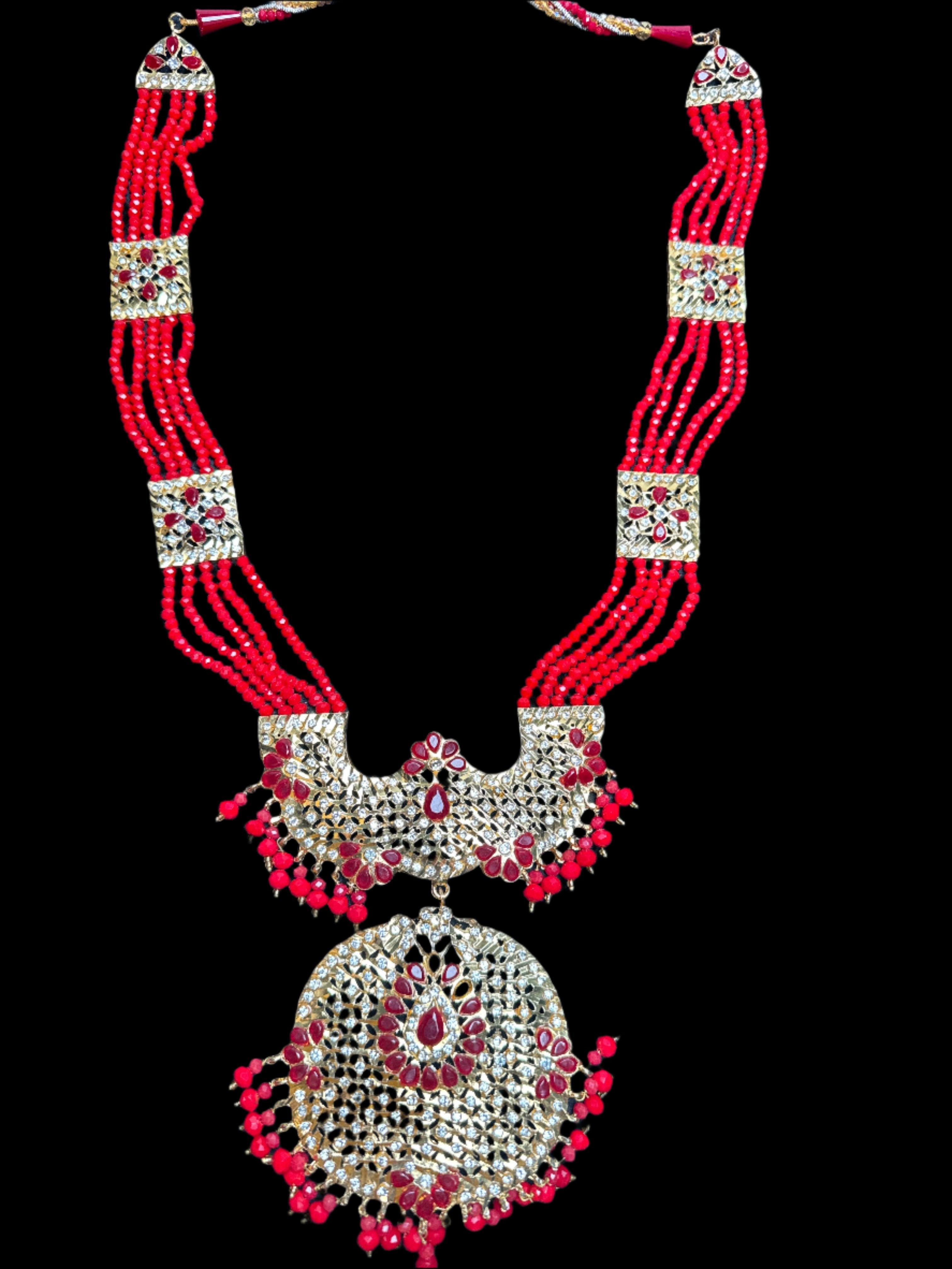 This Mala set consists of a long mala, a choker, earrings, a Bindi, and a Jomer. With its carefully selected combination of traditional jewellery, it creates a unique and beautiful look that's ideal for any traditional occasion. Crafted from premium materials, its pieces are sturdy and durable, ensuring an impeccable look for years to come.