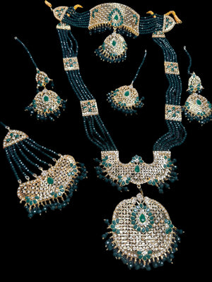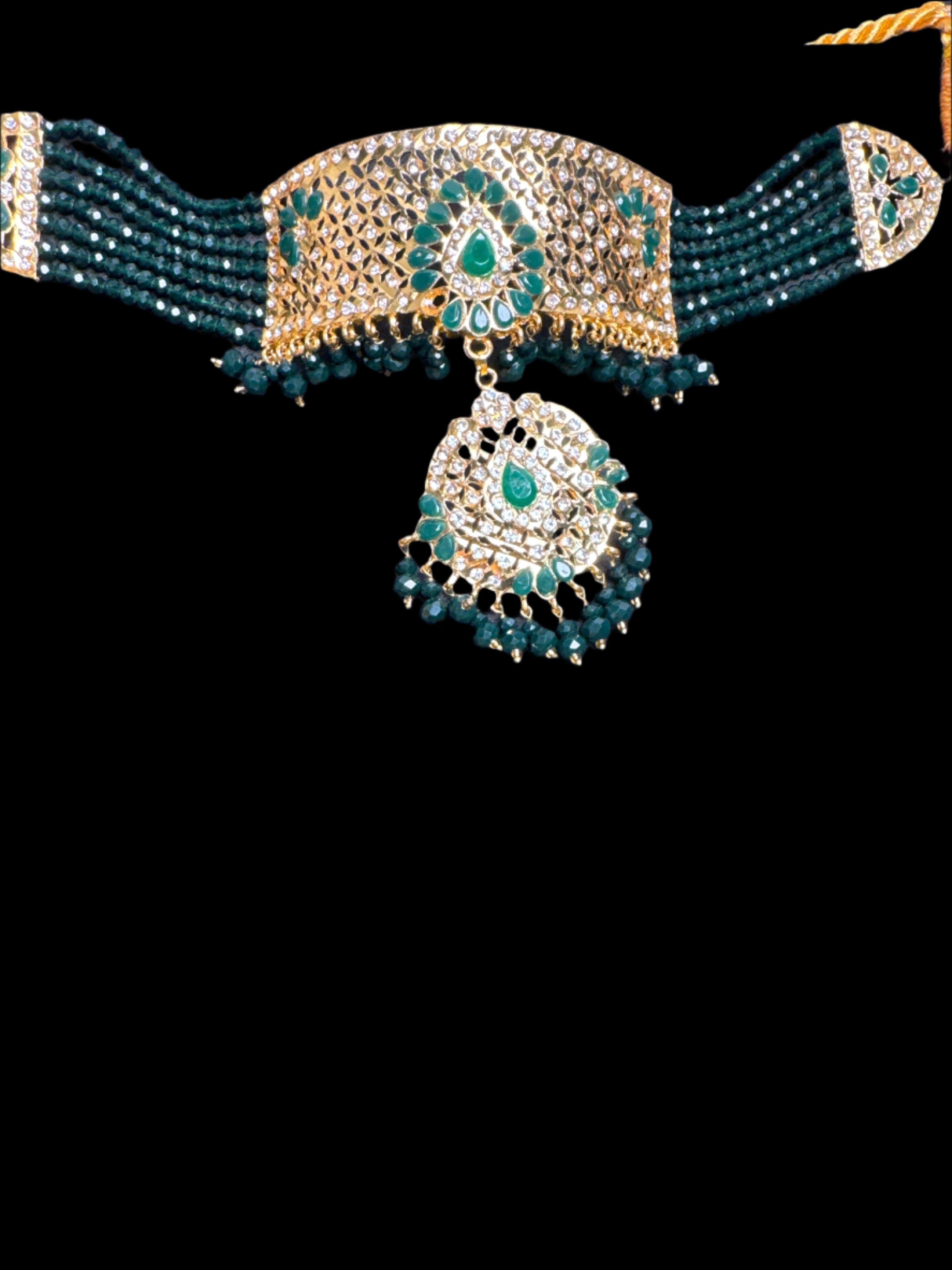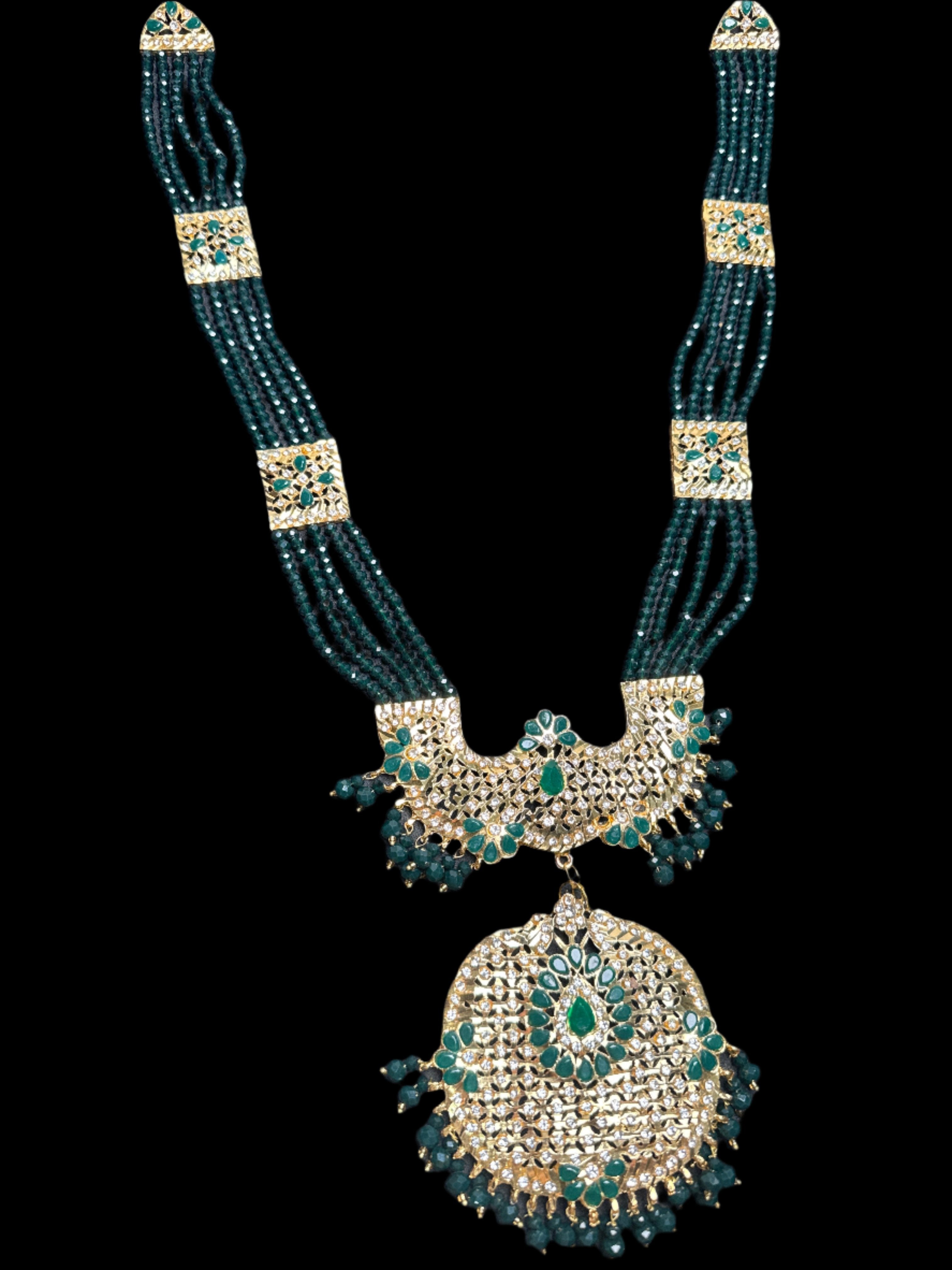 This Mala set consists of a long mala, a choker, earrings, a Bindi, and a Jomer. With its carefully selected combination of traditional jewellery, it creates a unique and beautiful look that's ideal for any traditional occasion. Crafted from premium materials, its pieces are sturdy and durable, ensuring an impeccable look for years to come.