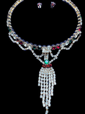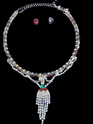 Golden Necklace and earring set with multi colour pearls - JS62