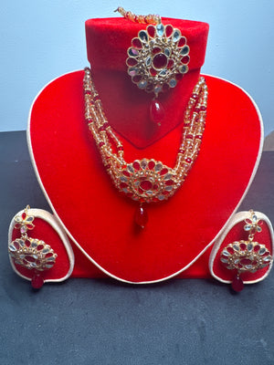 The Golden Necklace and earring set is crafted from the finest materials for a lustrous gold-like finish. Its simple but elegant design is perfect for those seeking timeless sophistication. It's both lightweight and highly durable. Enjoy the look of luxurious jewellery without the expensive price tag.