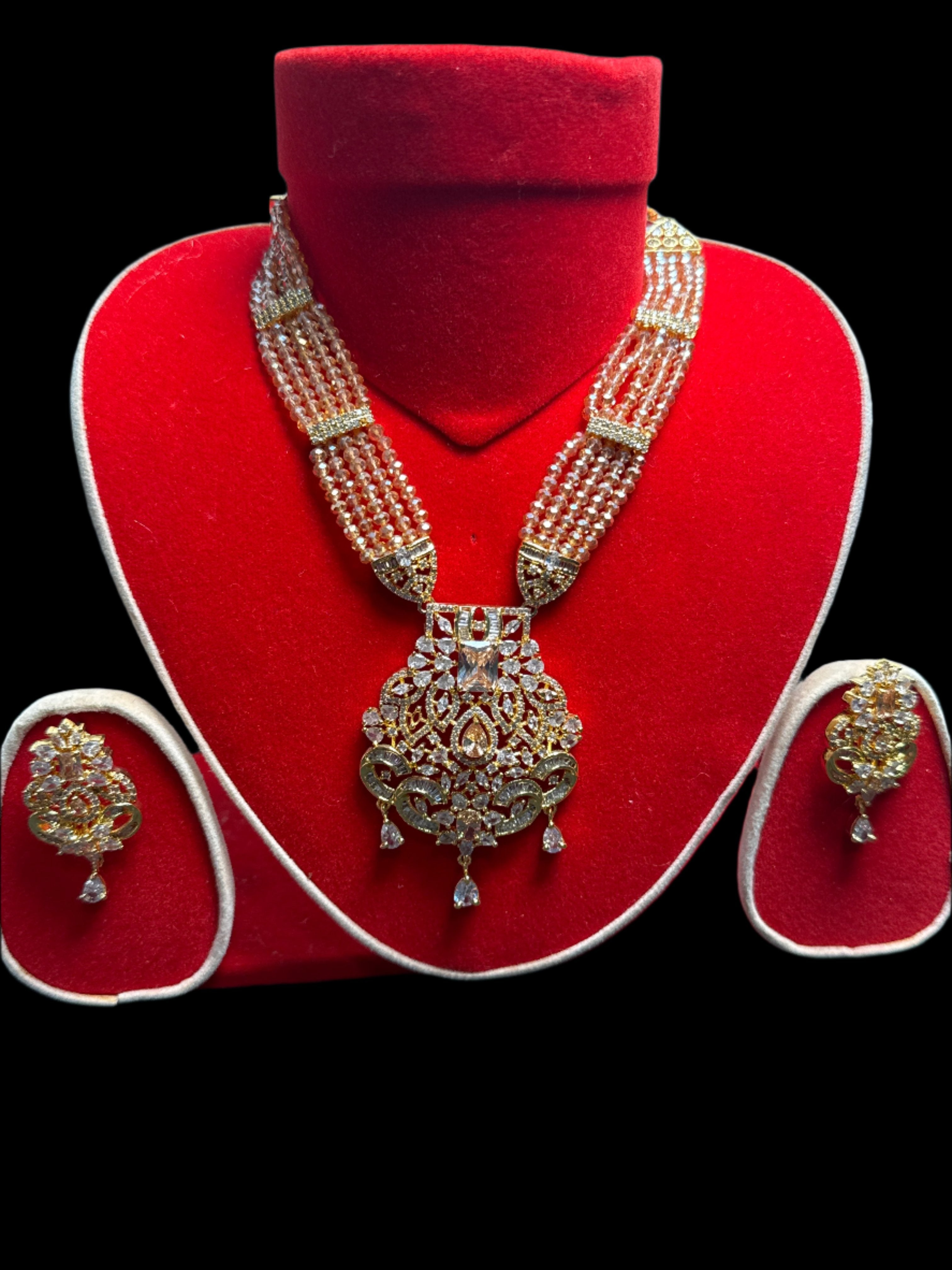 The Golden Necklace and earring set is crafted from the finest materials for a lustrous gold-like finish. Its simple but elegant design is perfect for those seeking timeless sophistication. It's both lightweight and highly durable. Enjoy the look of luxurious jewellery without the expensive price tag.