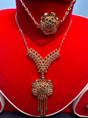 Golden Necklace and earring & Bindia & Ring set - JS72