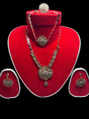 Golden Necklace and earring & Bracelet & Ring set - JS75