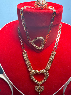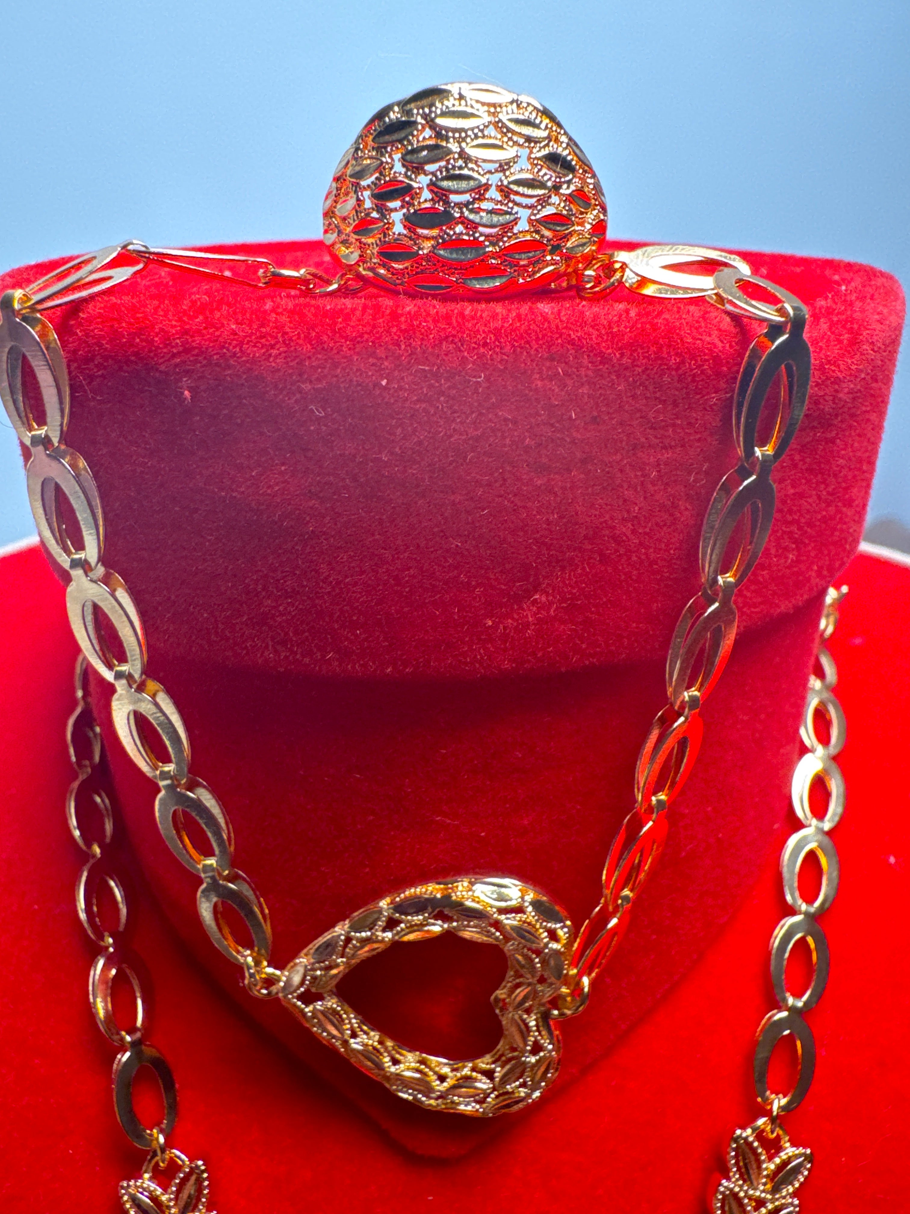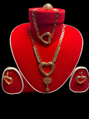 Golden Necklace and earring & Bracelet and Ring set - JS76