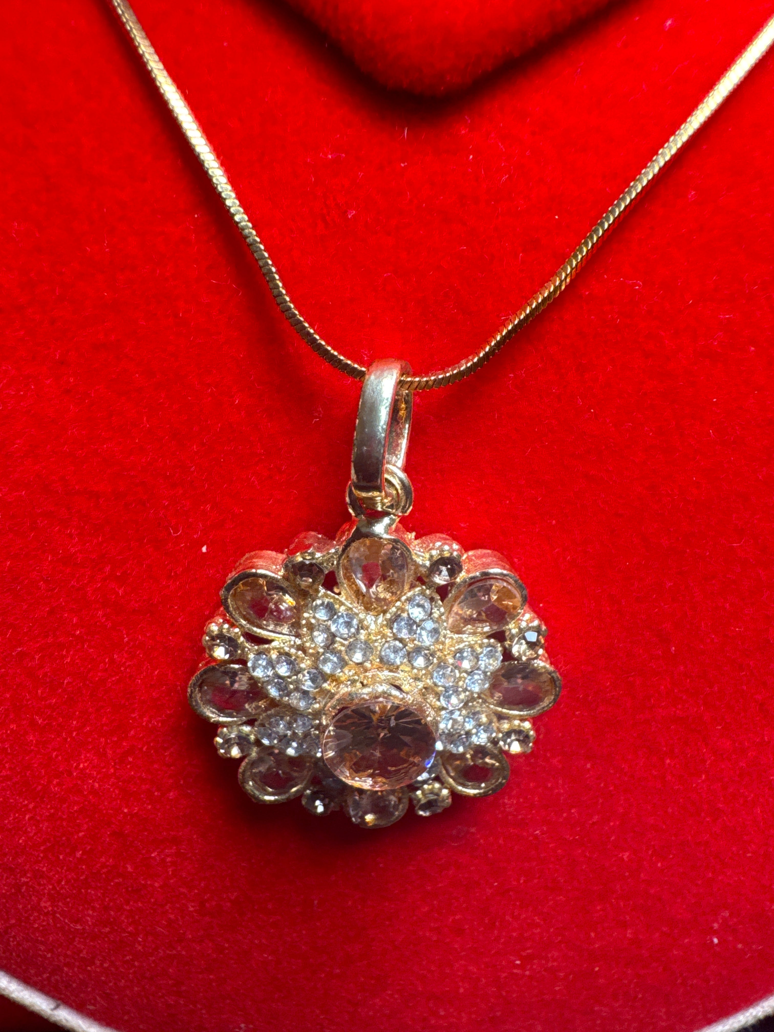 The Golden Necklace and earring set is crafted from the finest materials for a lustrous gold-like finish. Its simple but elegant design is perfect for those seeking timeless sophistication. It's both lightweight and highly durable. Enjoy the look of luxurious jewellery without the expensive price tag.