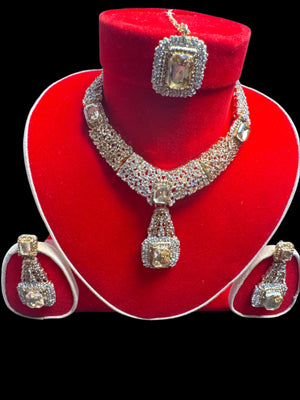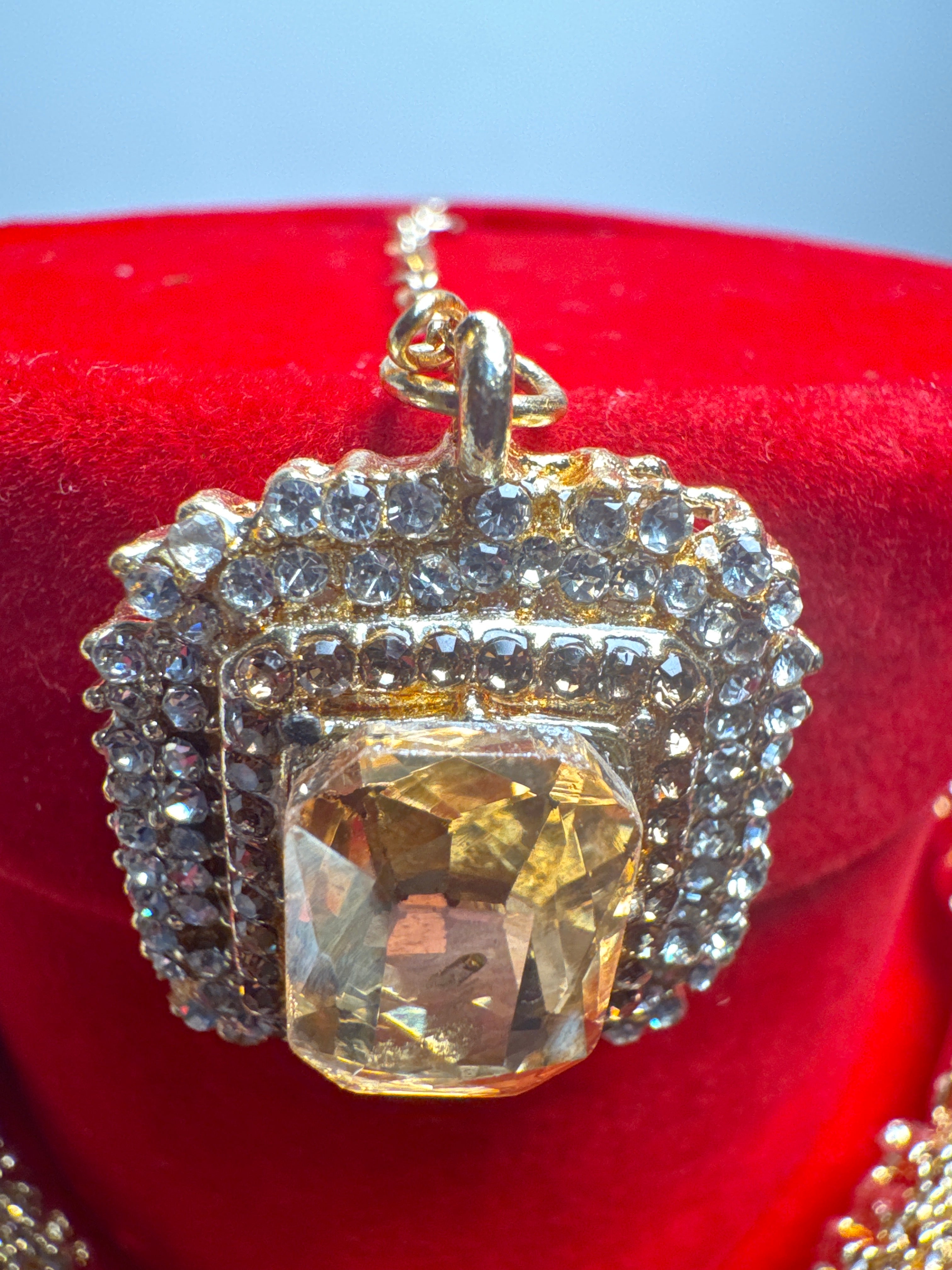 The Golden Necklace and earring set is crafted from the finest materials for a lustrous gold-like finish. Its simple but elegant design is perfect for those seeking timeless sophistication. It's both lightweight and highly durable. Enjoy the look of luxurious jewellery without the expensive price tag.