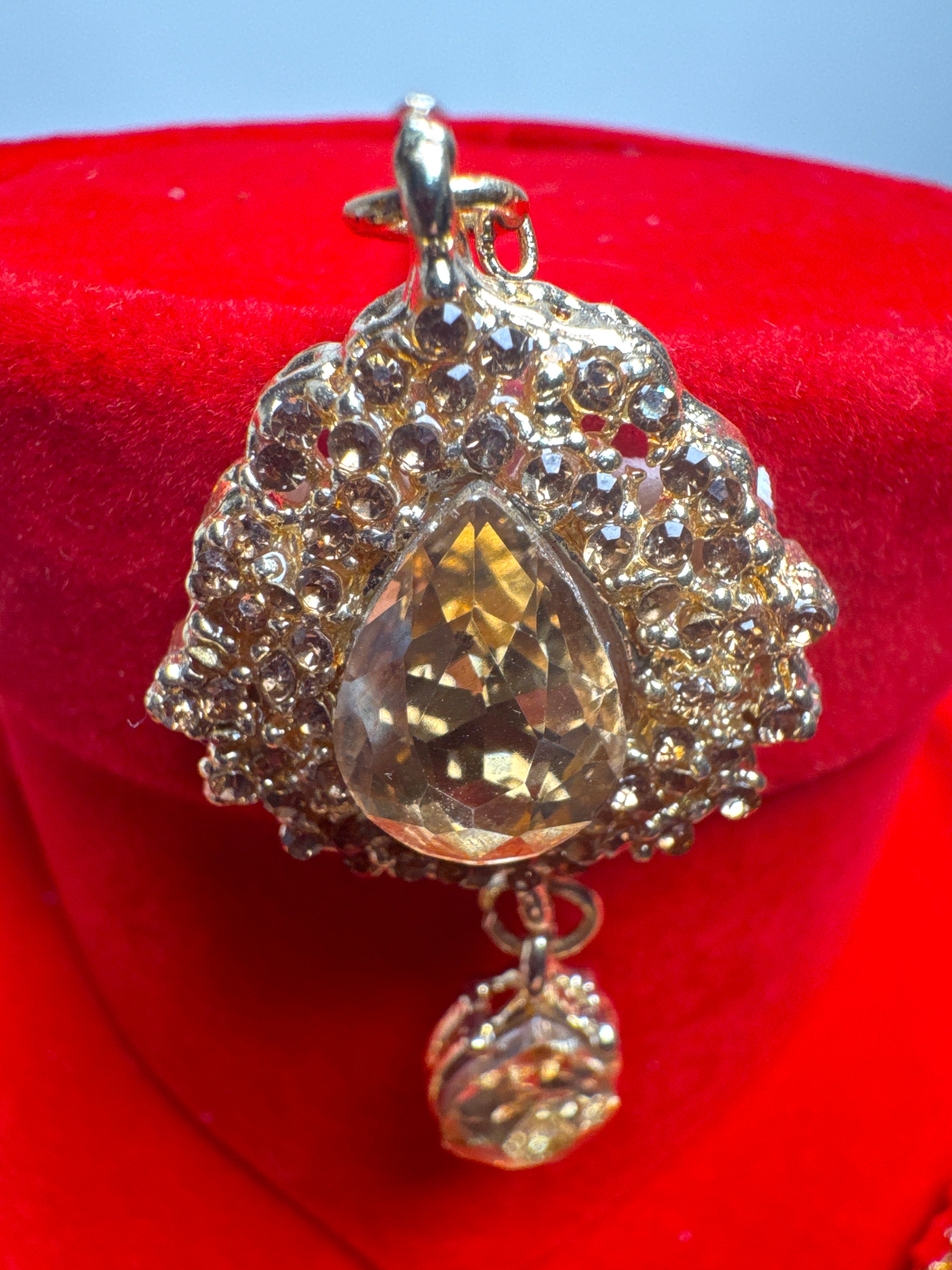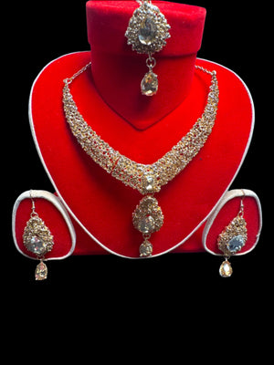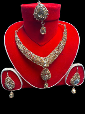The Golden Necklace and earring set is crafted from the finest materials for a lustrous gold-like finish. Its simple but elegant design is perfect for those seeking timeless sophistication. It's both lightweight and highly durable. Enjoy the look of luxurious jewellery without the expensive price tag.