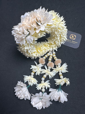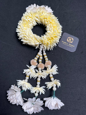 - Details: The gajra features white flowers and beads, creating a delicate and elegant look. It is a beautiful accessory for any bride or bridesmaid. 🌸