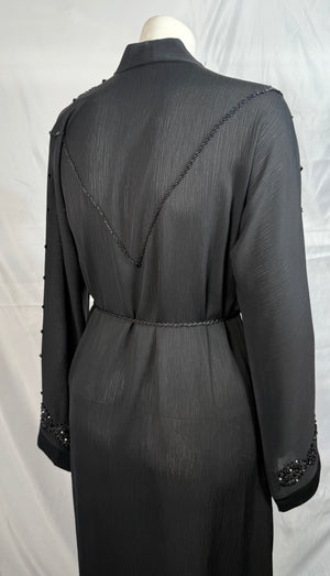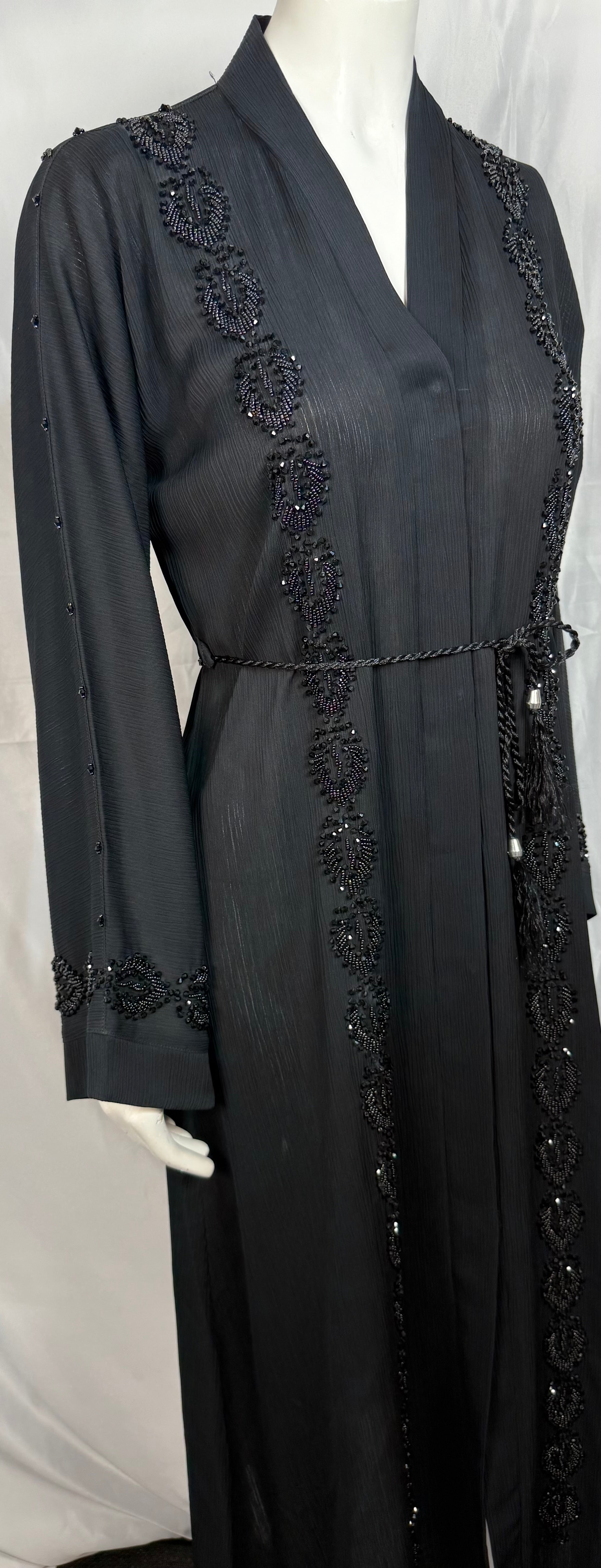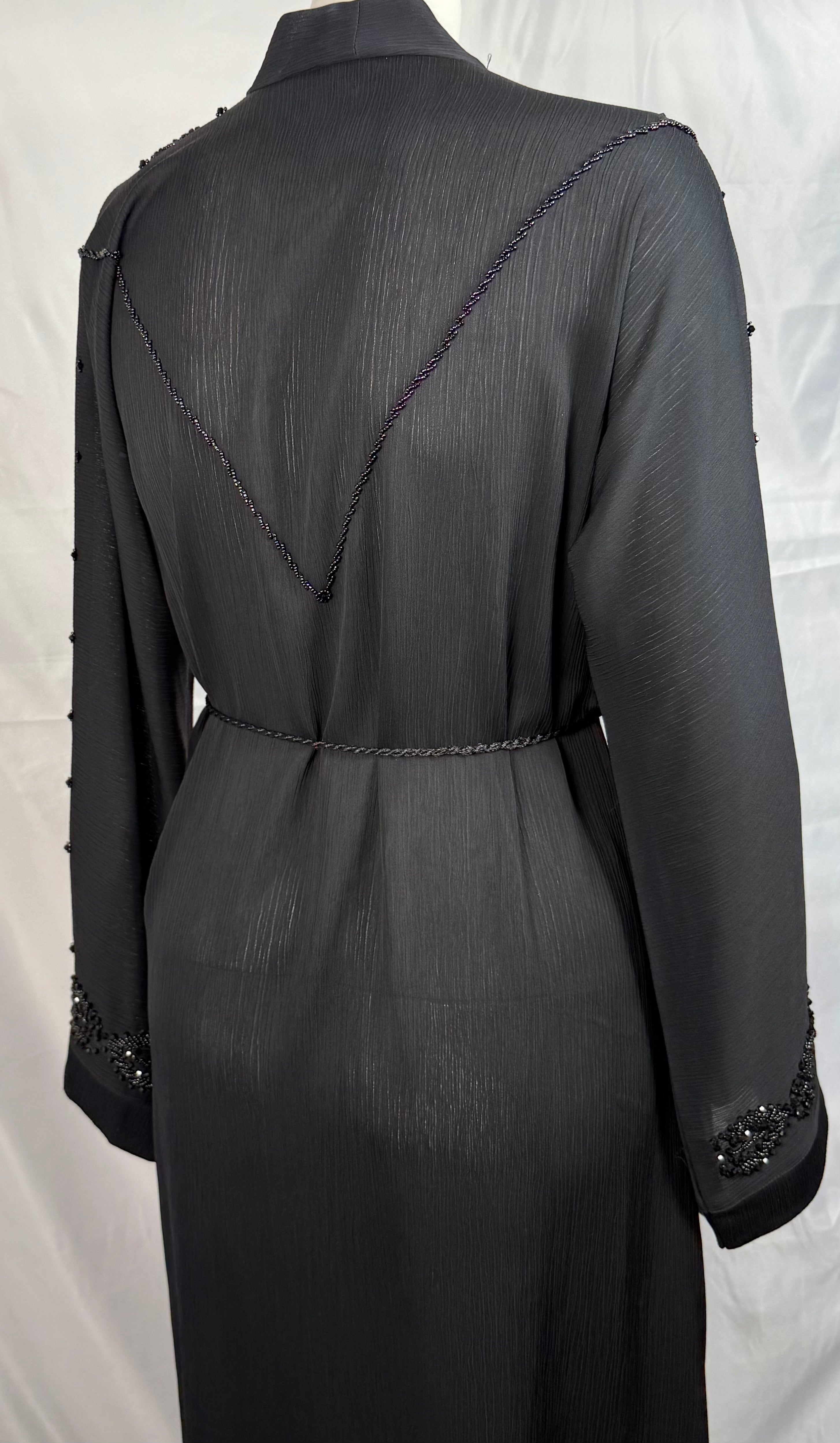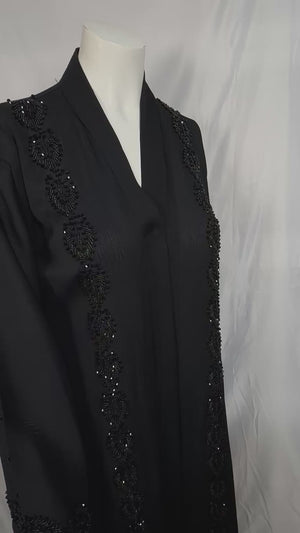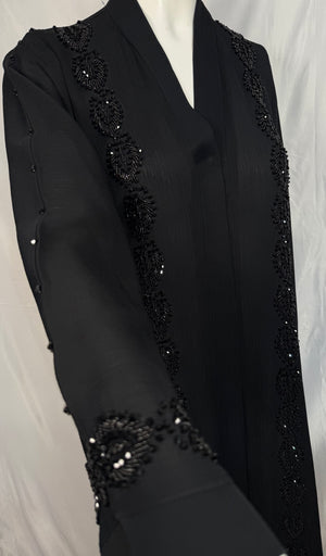 Black Beaded Abaya On Nida Fabric with Embroidered Pearls for Formal Occasions High-Quality Materials for Durability and Comfort