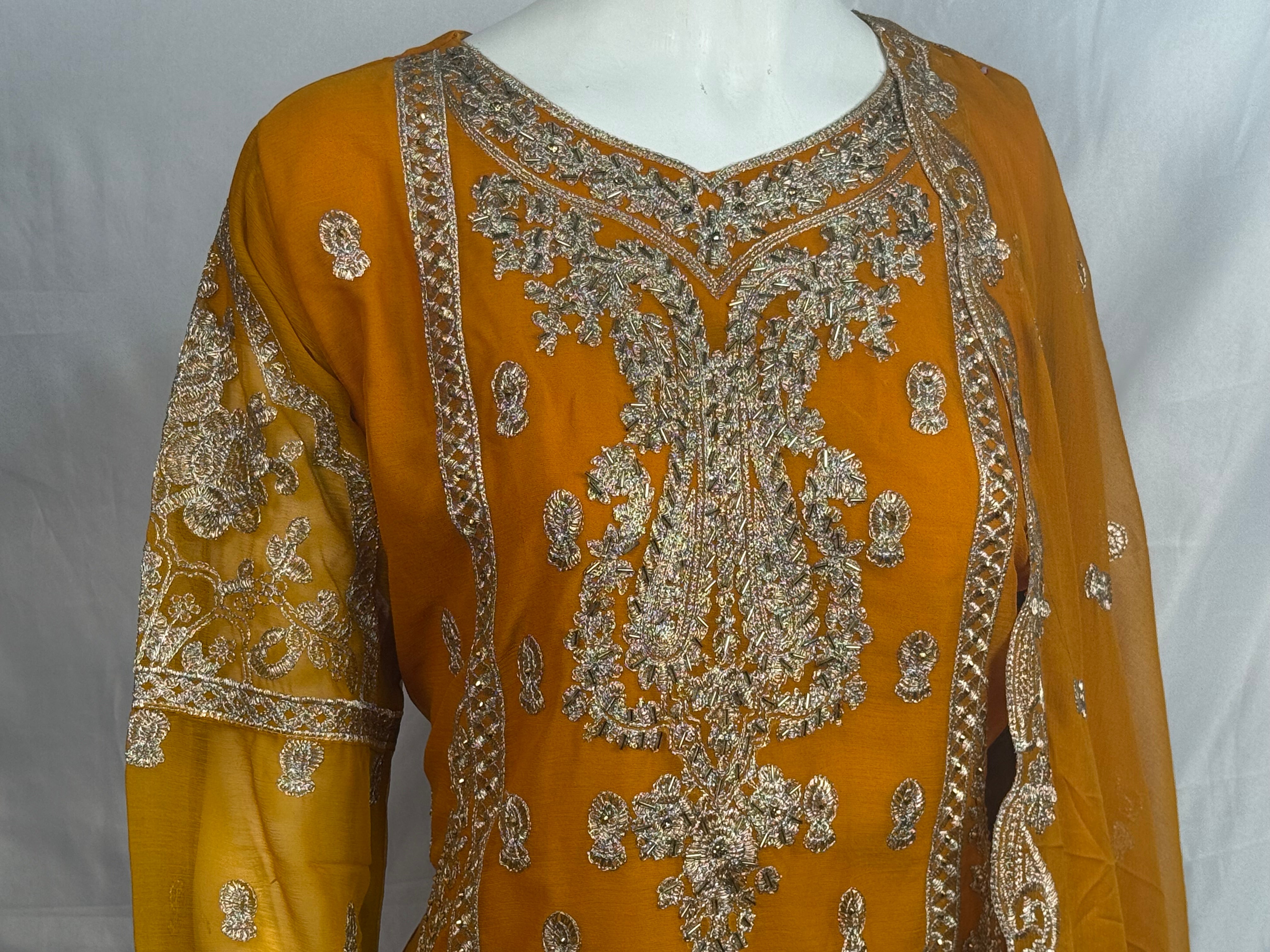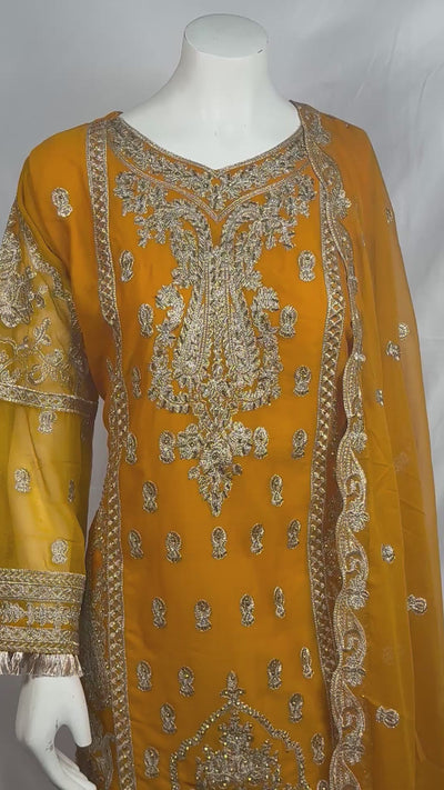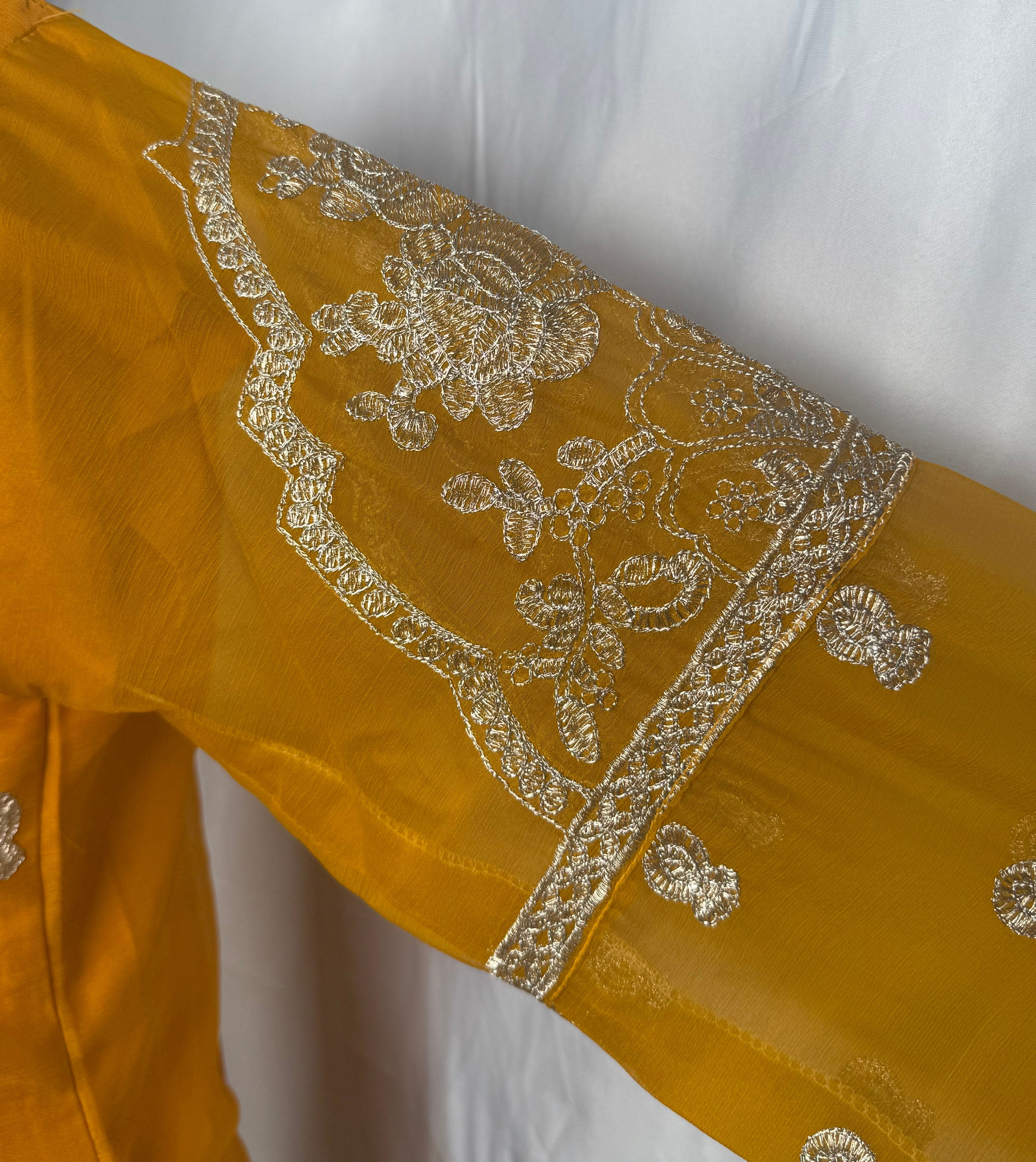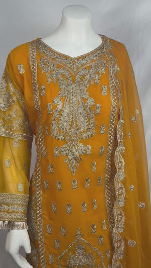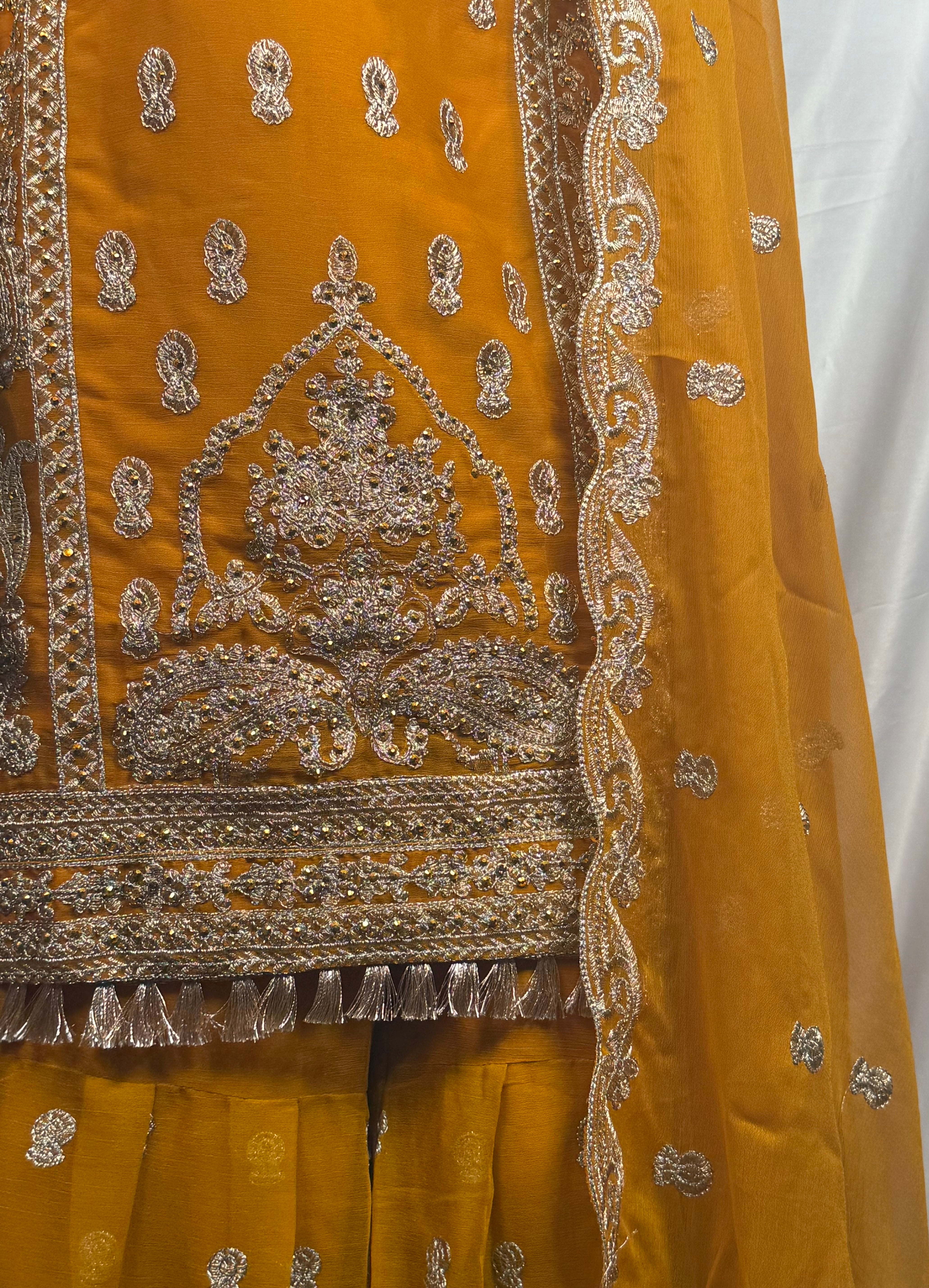 Ladies 3 Pcs Mustard Garara Set With Embroidery (Including Shirt, Garara And Duptta ) Lgs-2