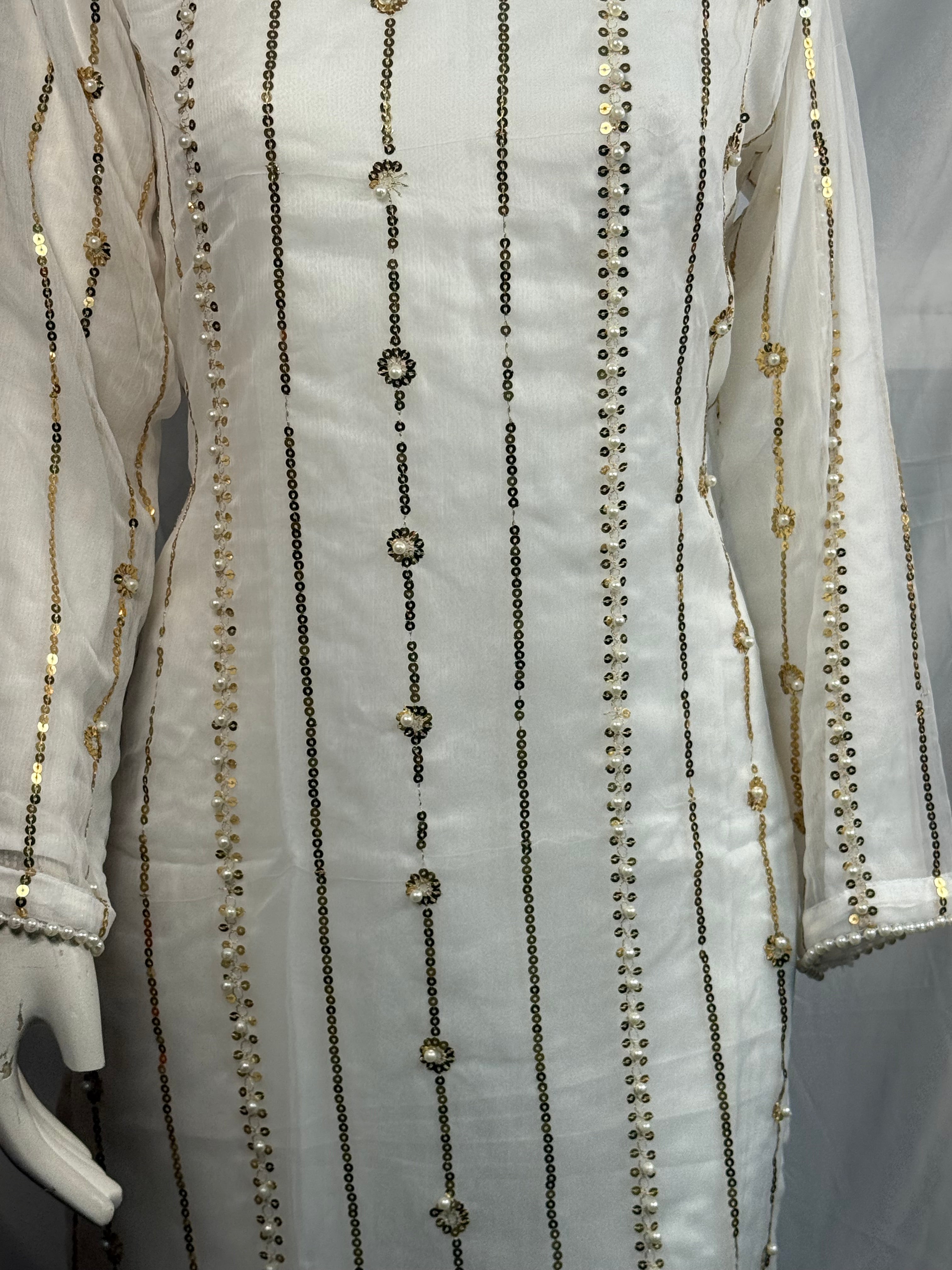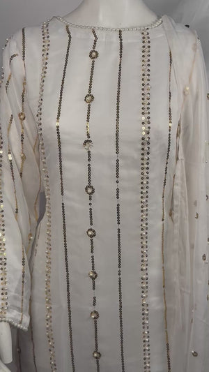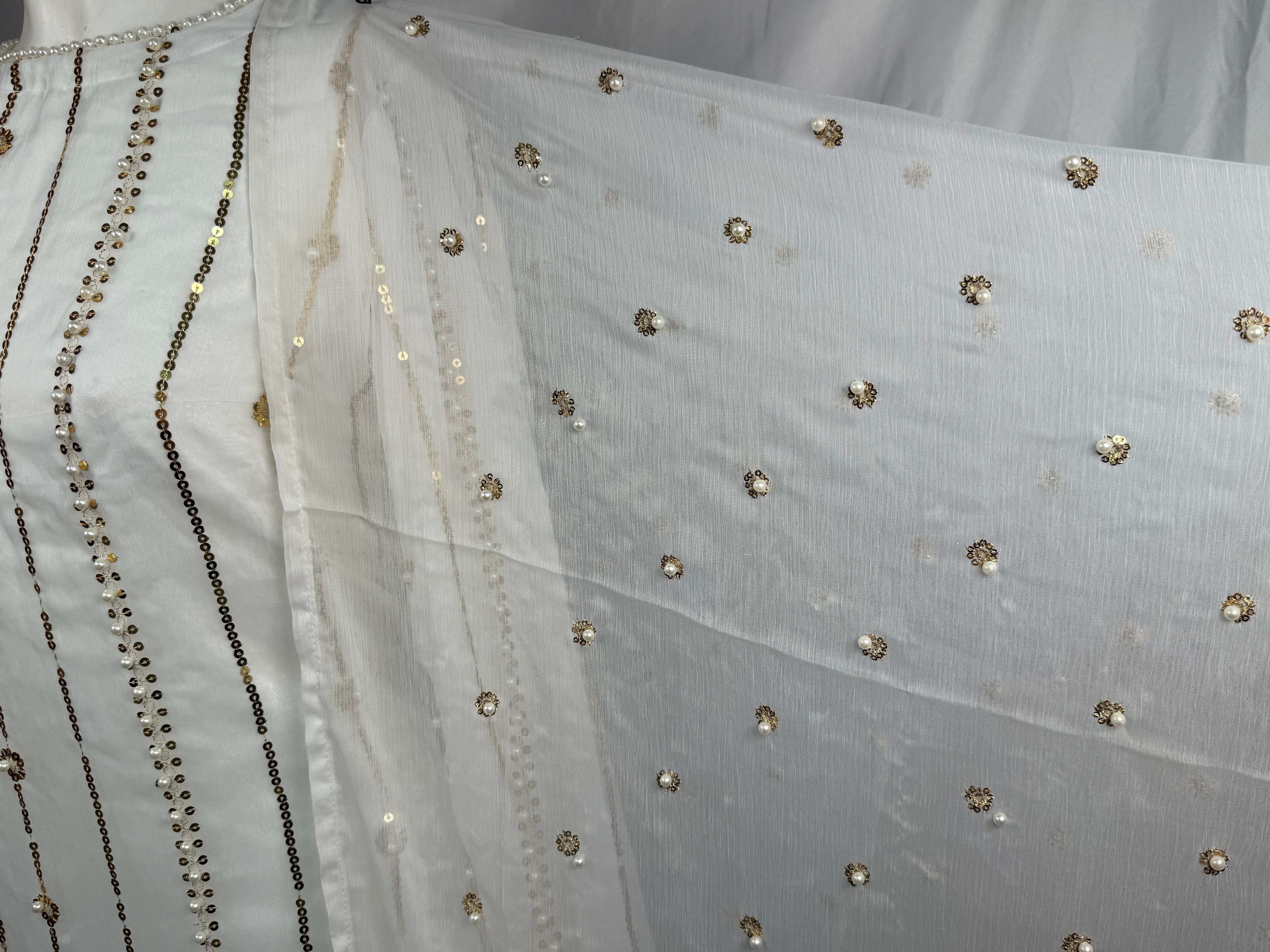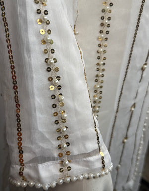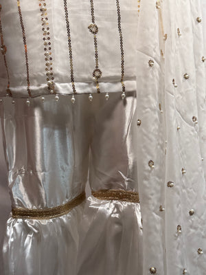 Ladies 3 Pcs White Garara Set With Embroidery And Beads Work (Including Shirt, Garara And Duptta ) Lgs-5