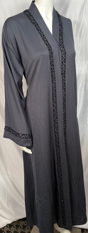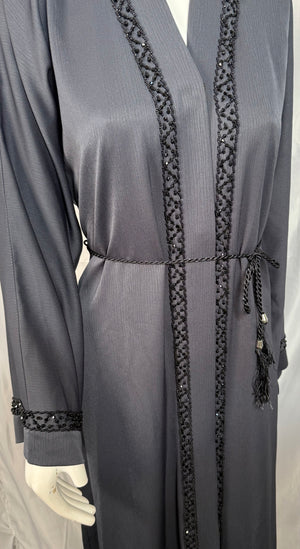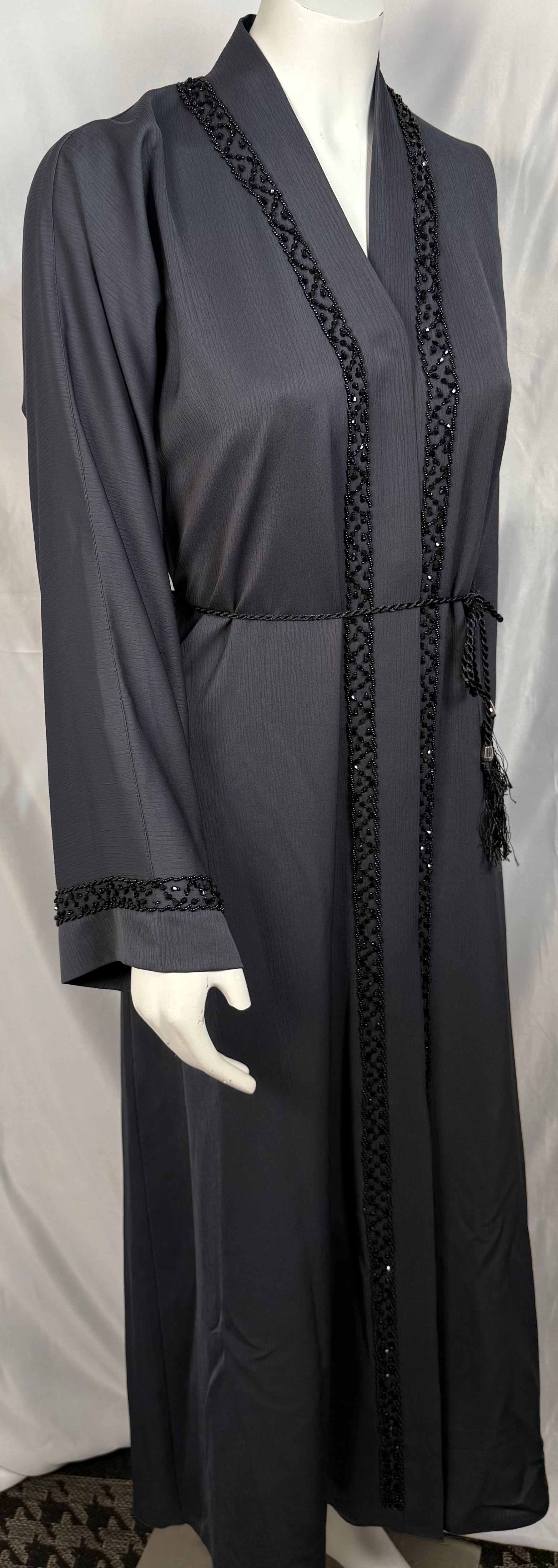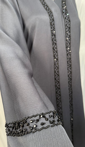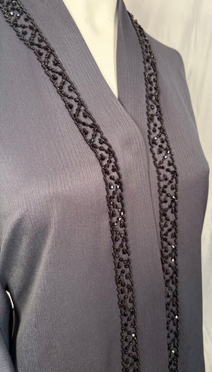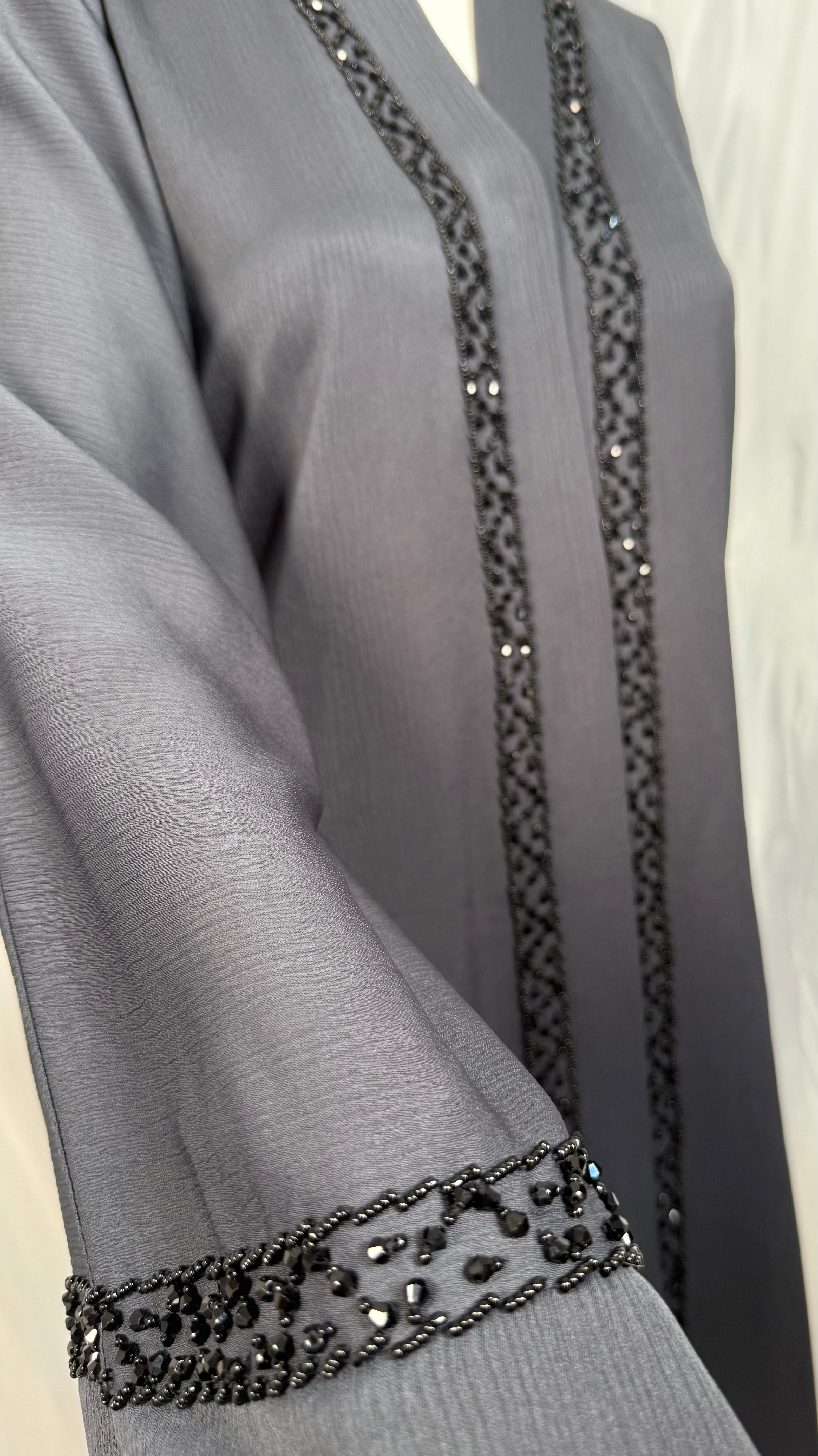 Ladies Grey Abaya With Bead Work Elegant Style In Intricate Details For Formal Occasions