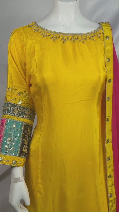 Ladies Three Piece Gotta And Hand Embellished Mehndi Suit
