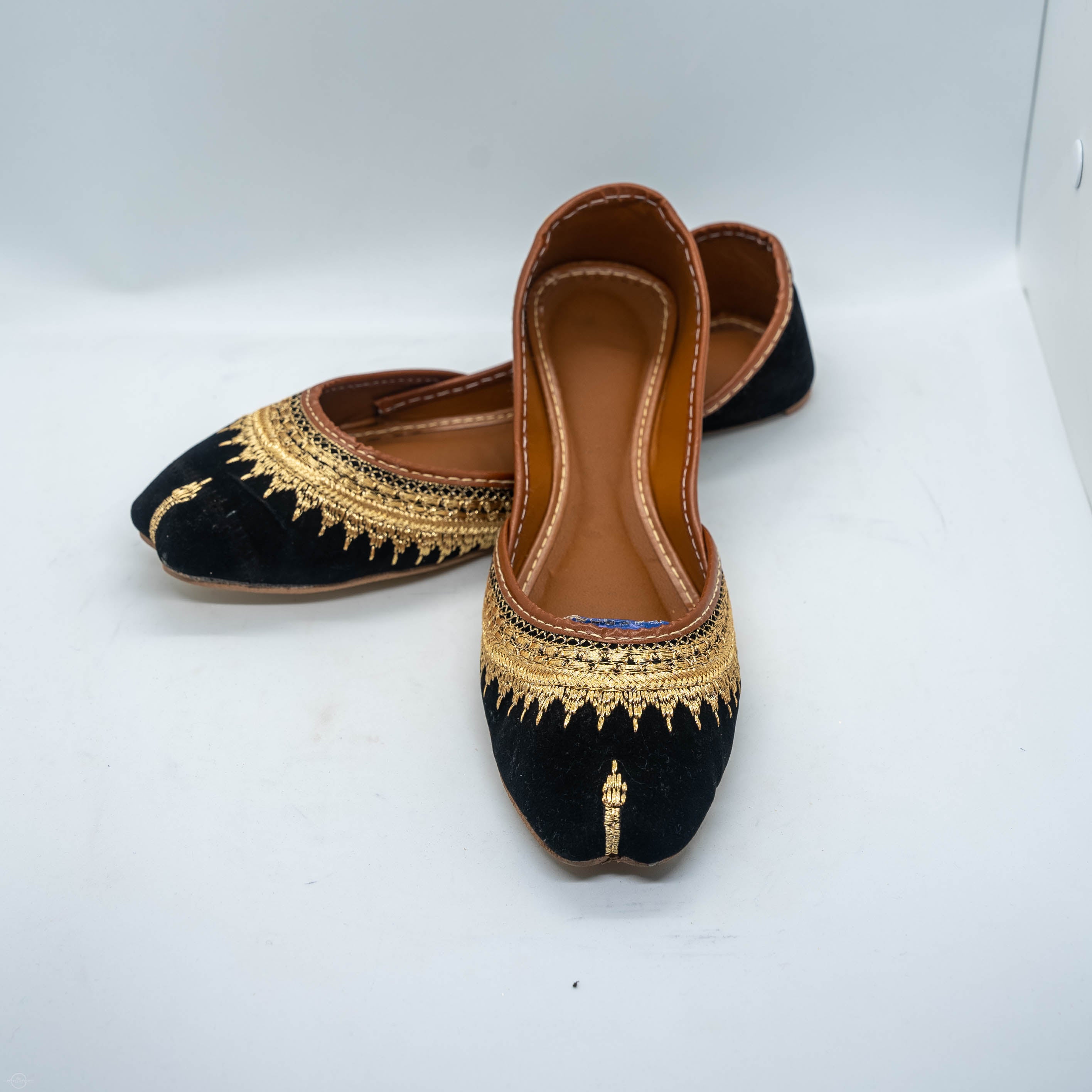 Leather Khuasa Black Velvet Embroidered Shoes with Gold Accents for Luxurious Comfort and Durability