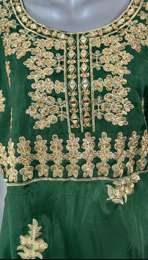 Long Cotton Silk Dress with Big Flare Embroidery and Mirror Work Perfect for Any Function British English Style