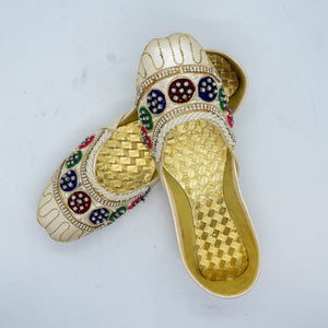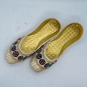 Matt Gold Khussa with Gems Handmade Traditional Shoes for Special Occasions Comfortable & Stylish