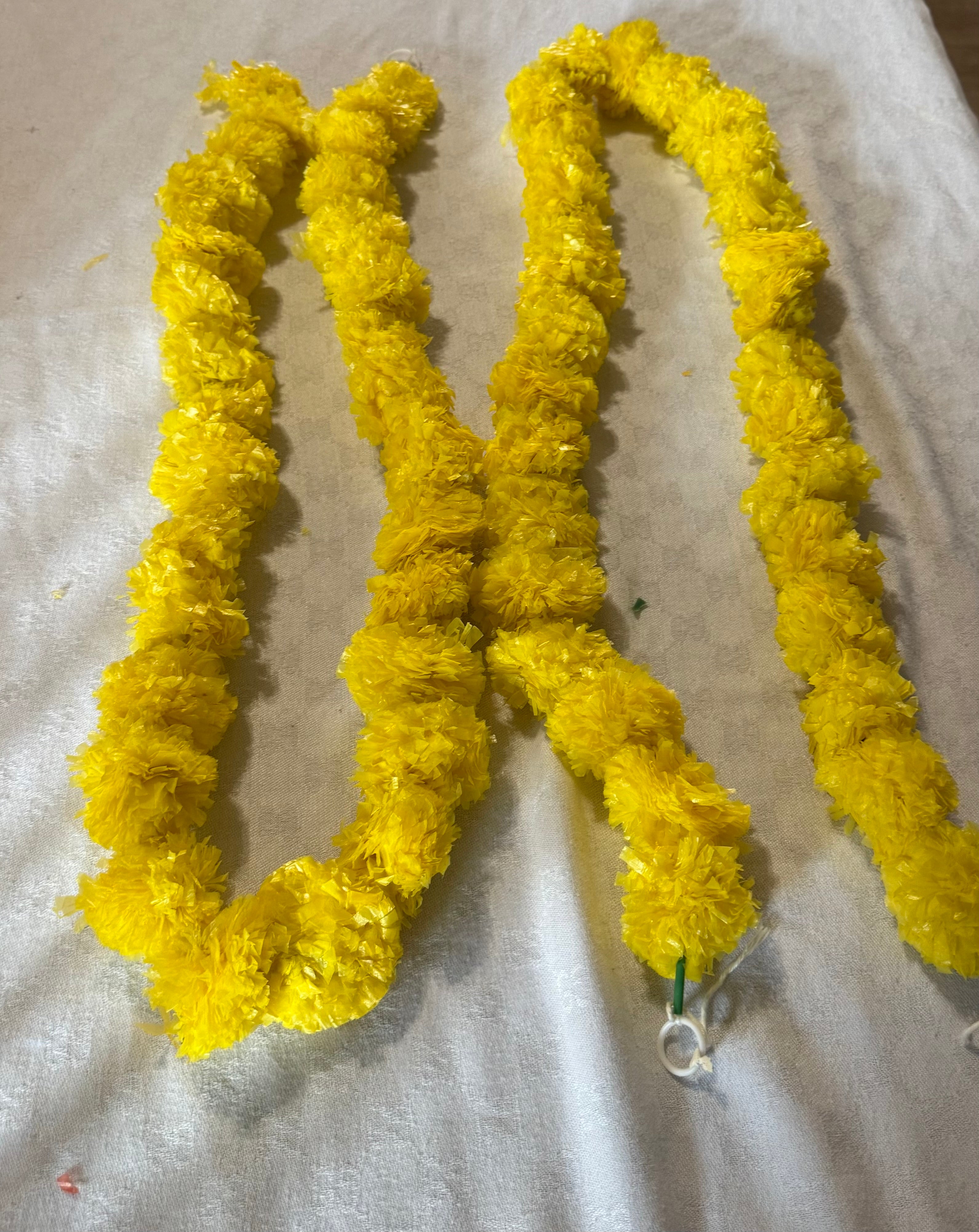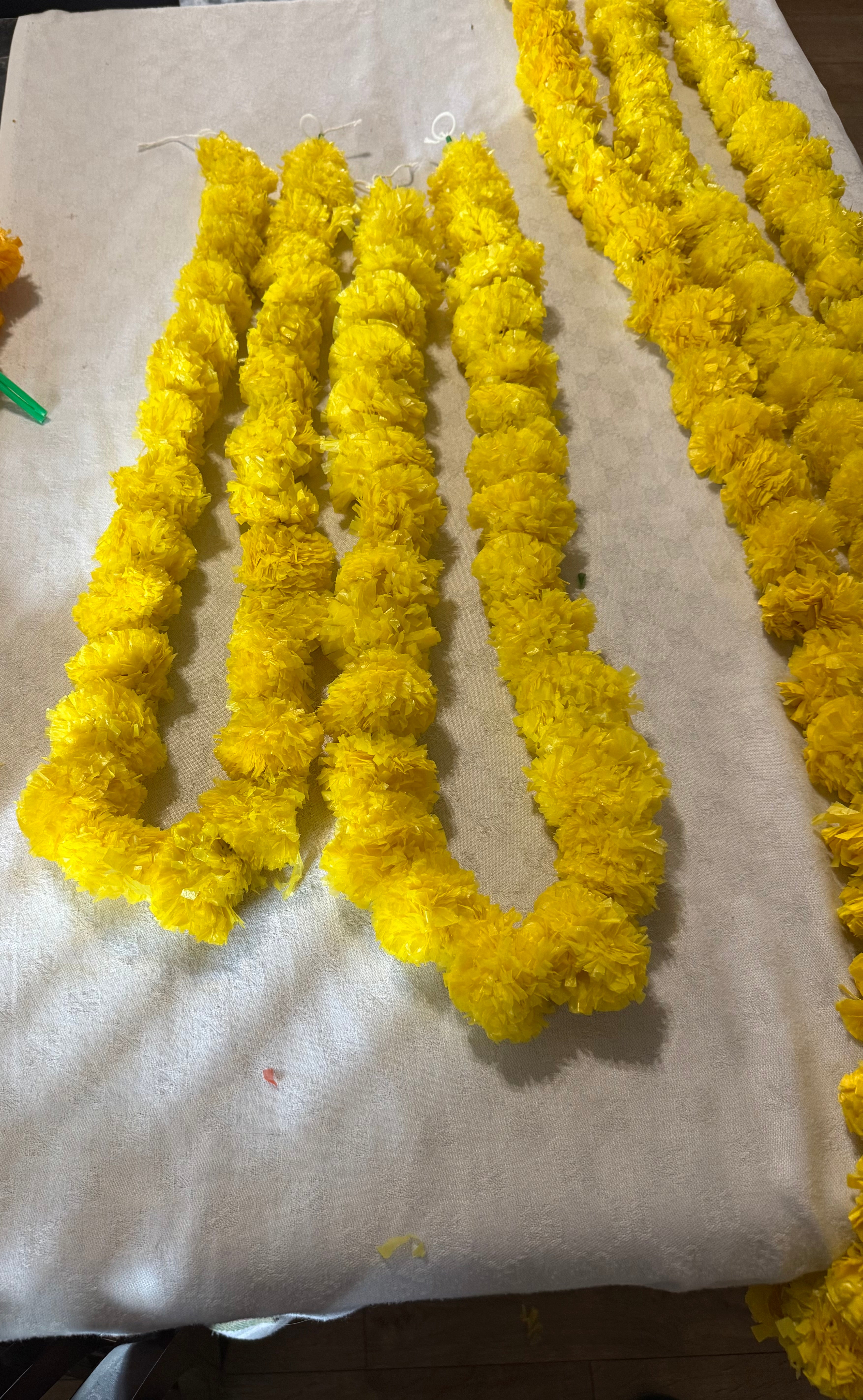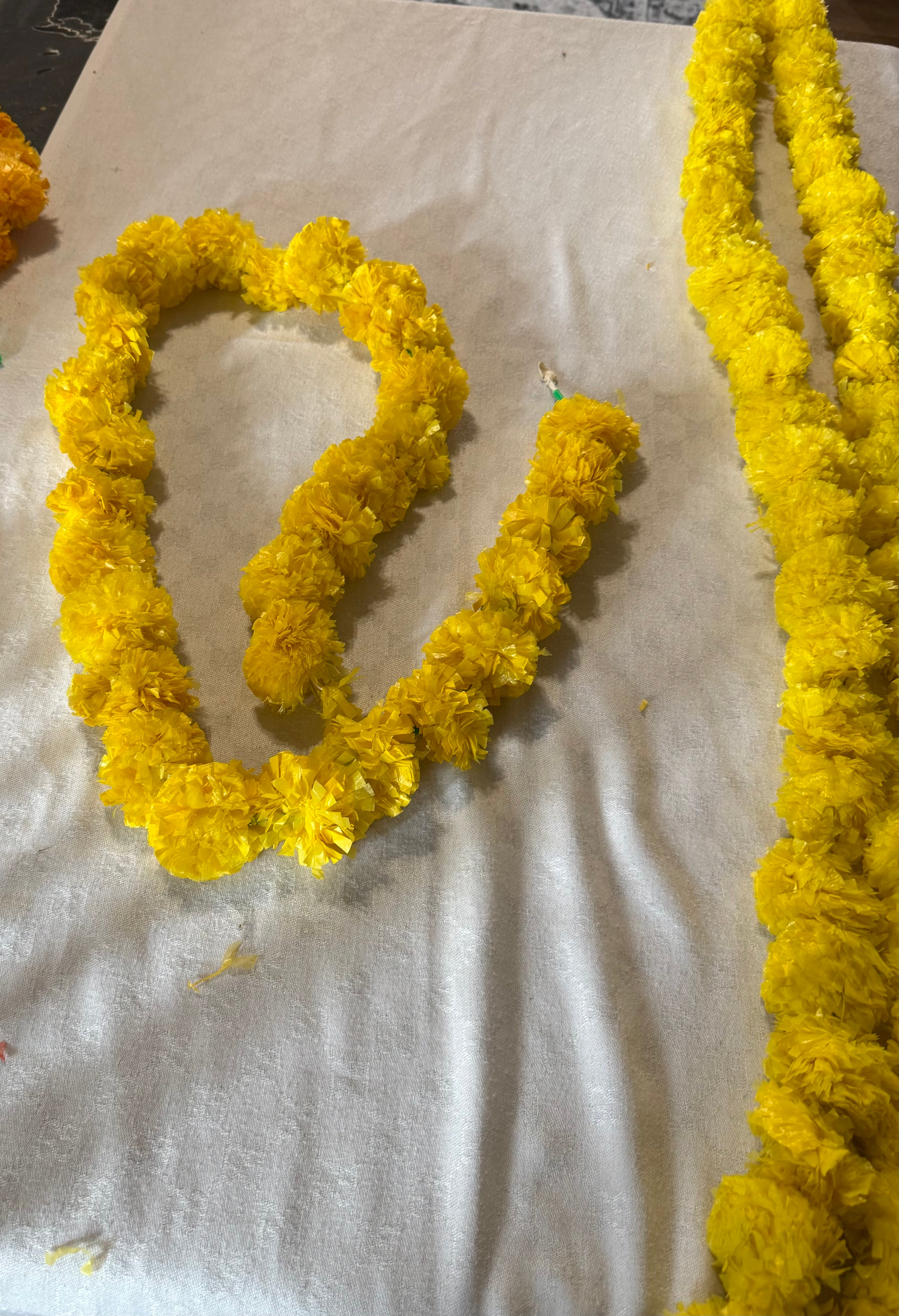 Artificial Marigold garland for MehndiWedding decoration mala/Artificial Marigold garland/home decoration for MehndiWedding decoration mala - Pack of 5 - Pack of 5