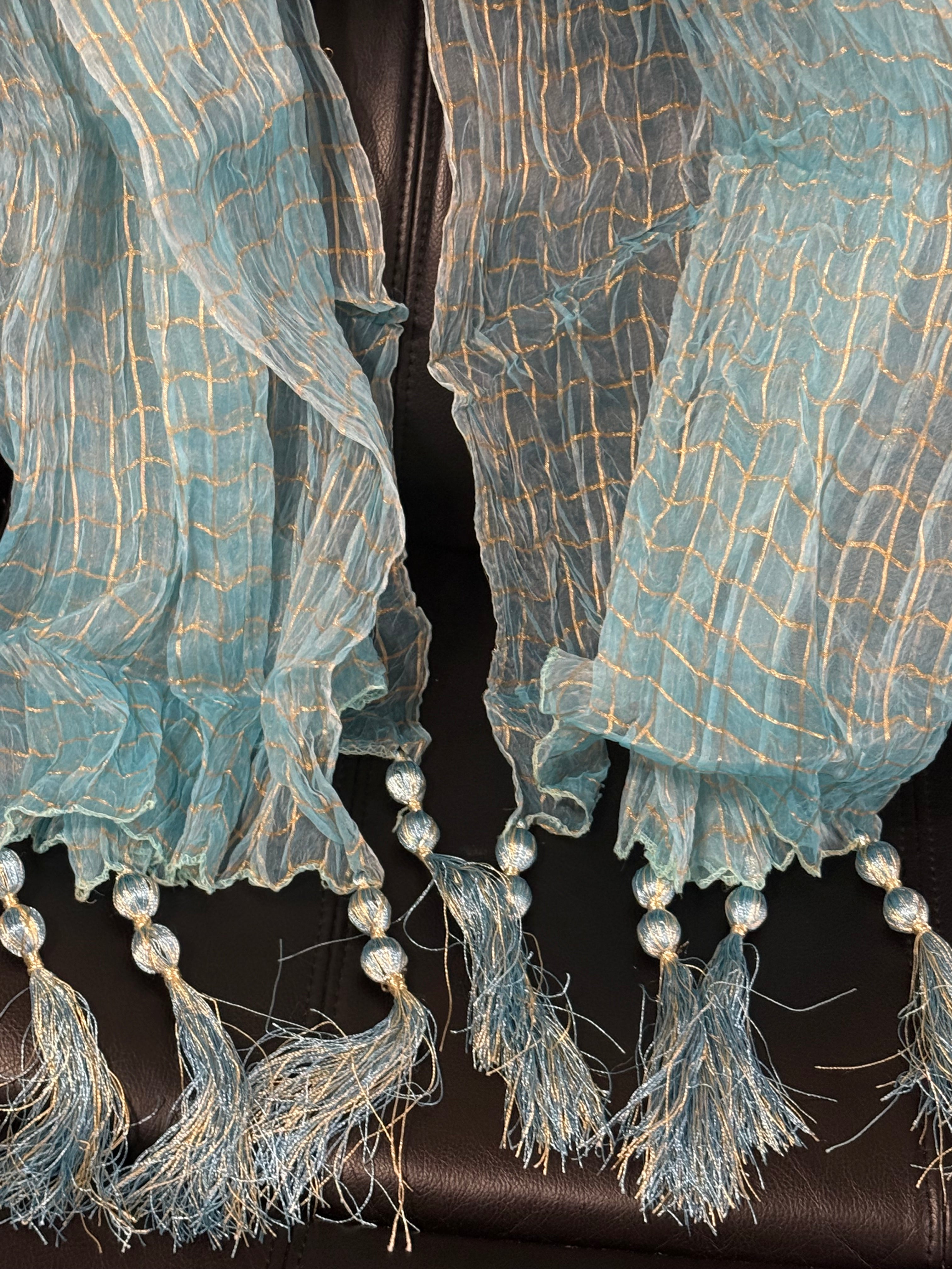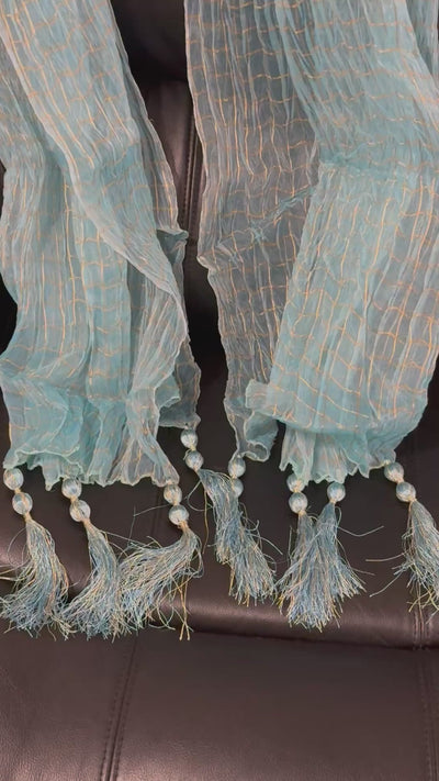 Mehndi Dupatta For The Lads In Aqua Blue Colour With Tussles