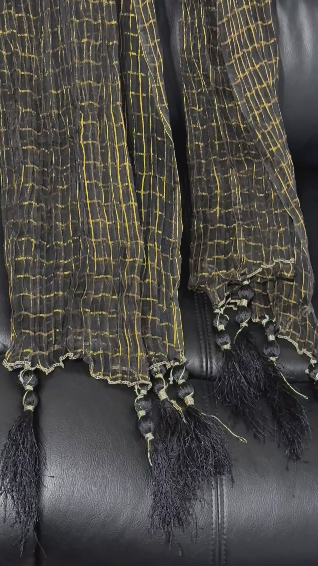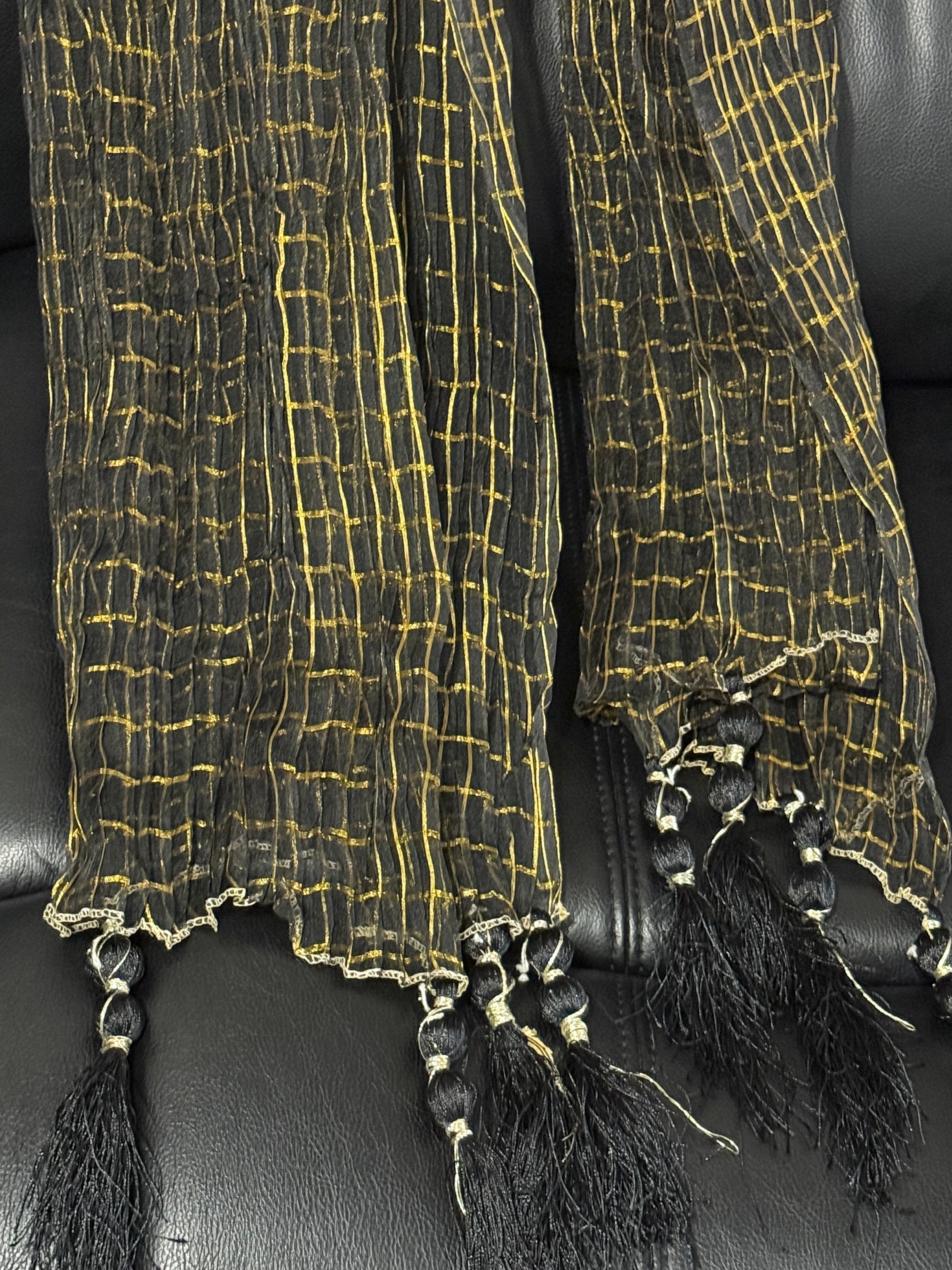 Mehndi Dupatta For The Lads In Black Gold Colour With Tussles