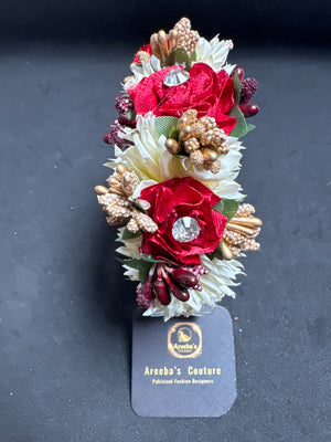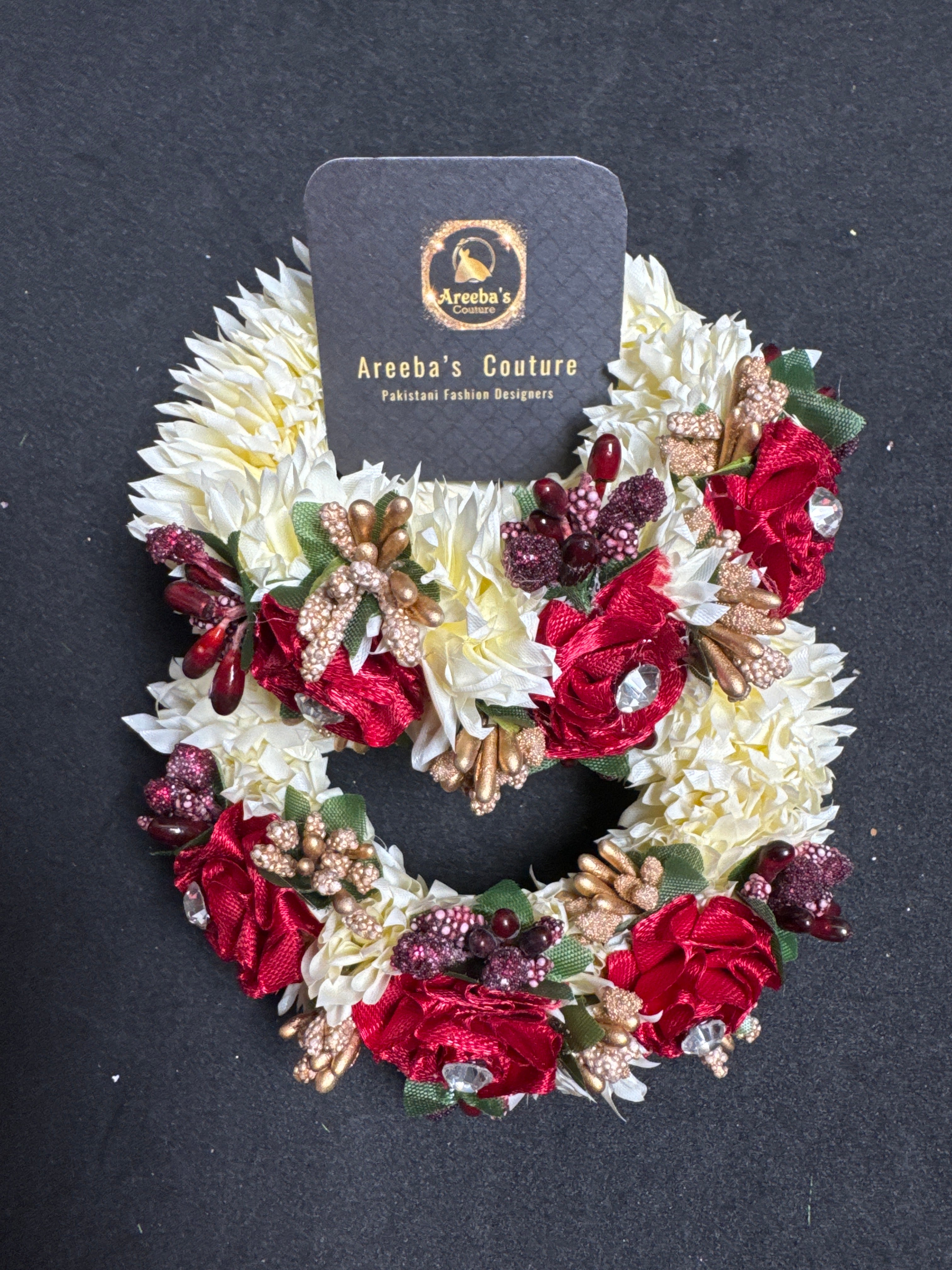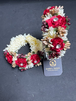 Flower Gajra set for Mehndi /haldi in Red & White. (Sold as pair)