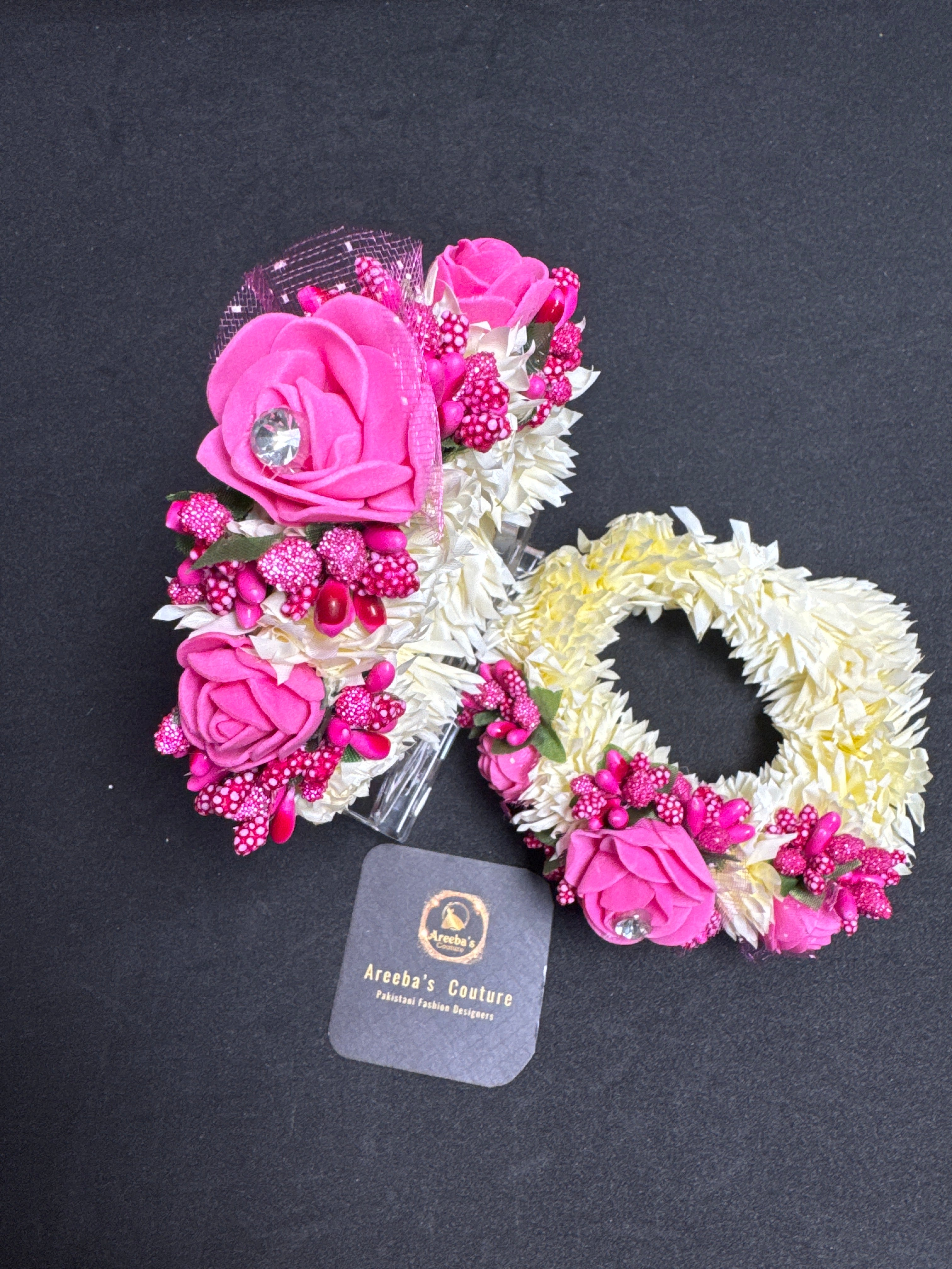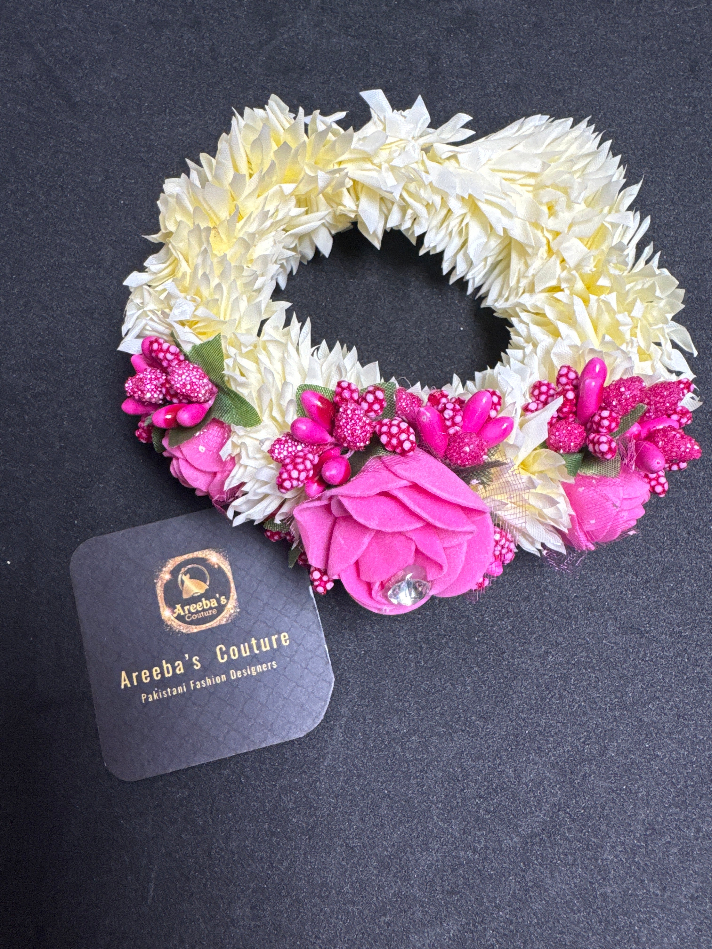 Flower Gajra set for Mehndi /haldi in pink. (Sold as pair)