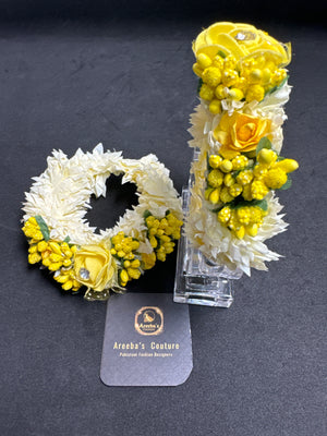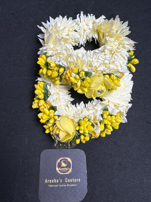 Flower Gajra set for Mehndi /haldi in Yellow. (Sold as pair)