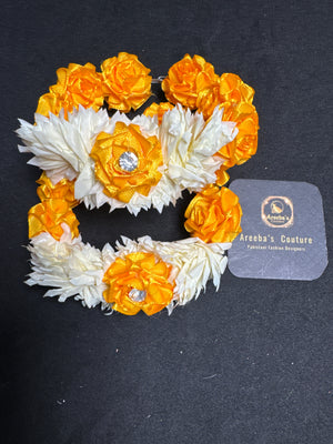 Flower Gajra Set for Mehndi Haldi in Light Orange Sold as Pair Traditional Fashion Accessory (SOLD AS PAIR)