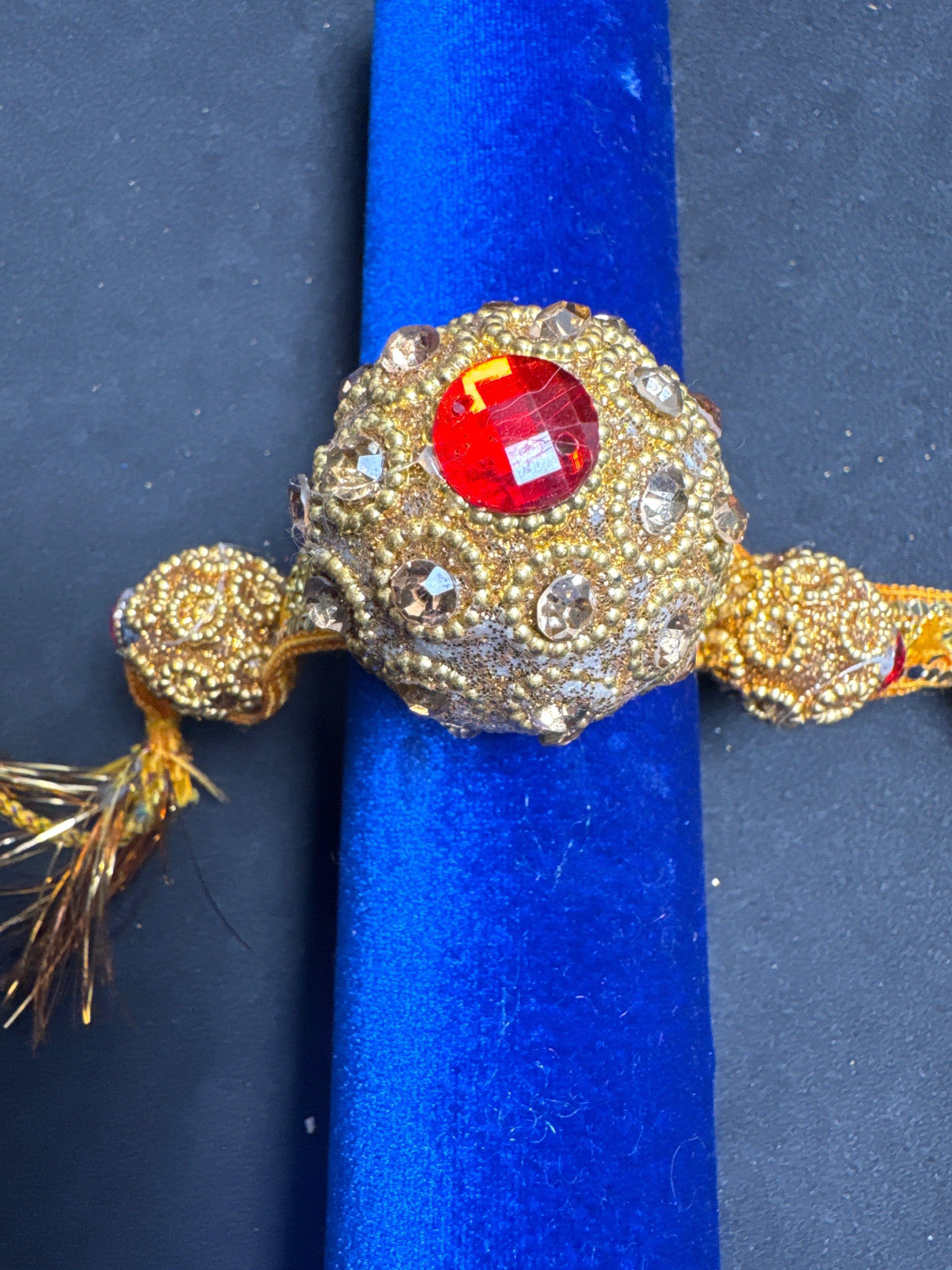 Dulha Groom Gana Adjustable Traditional Indian Wedding Accessory with Red Gemstones and Gold Accents