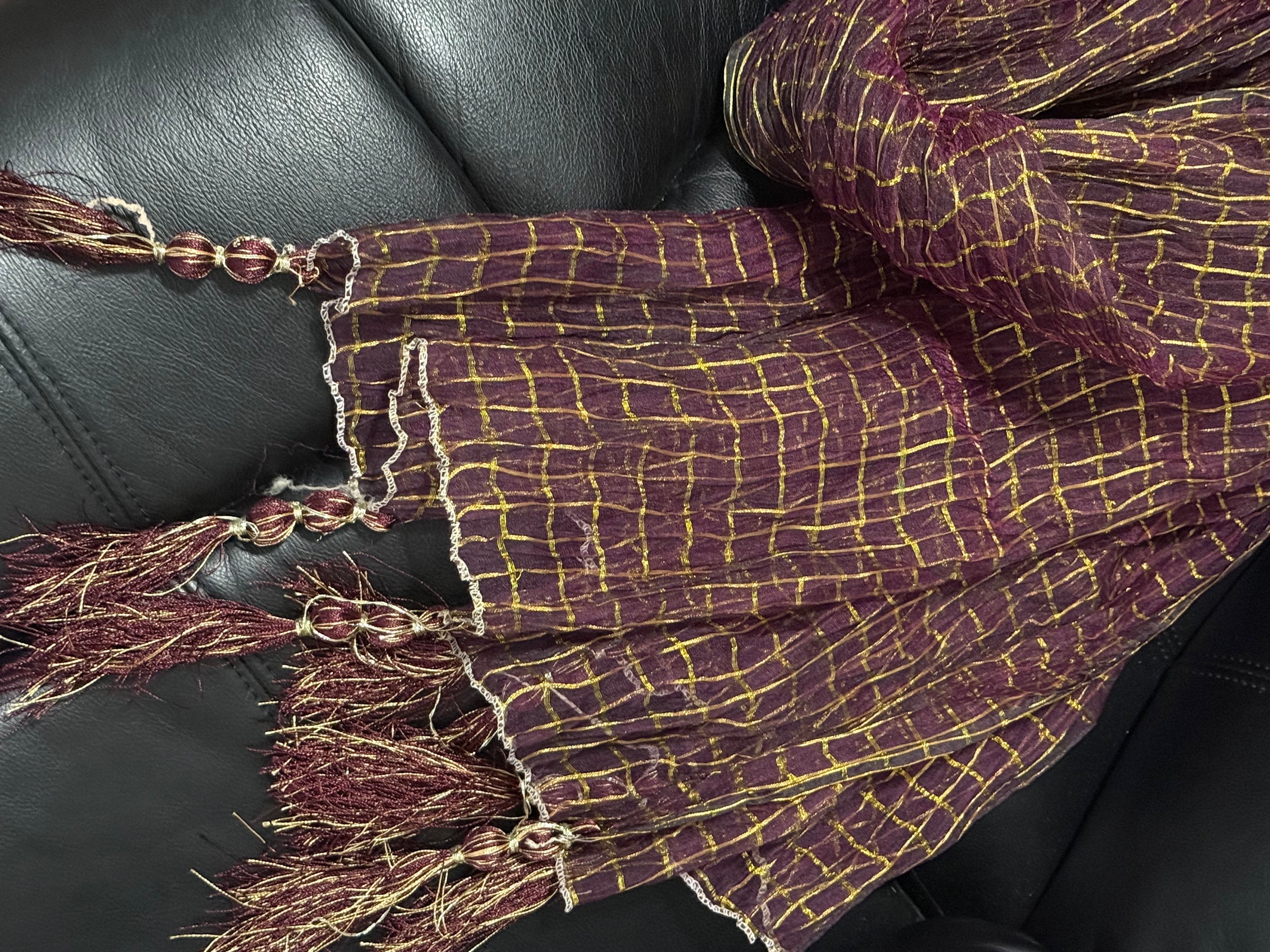Mehndi Dupatta(Chunri) For The Lads In Plum Colour With Tussles